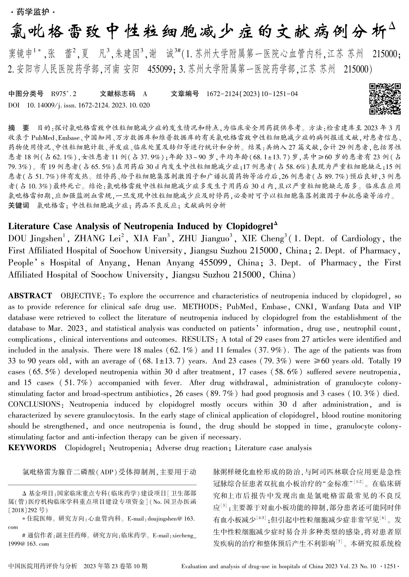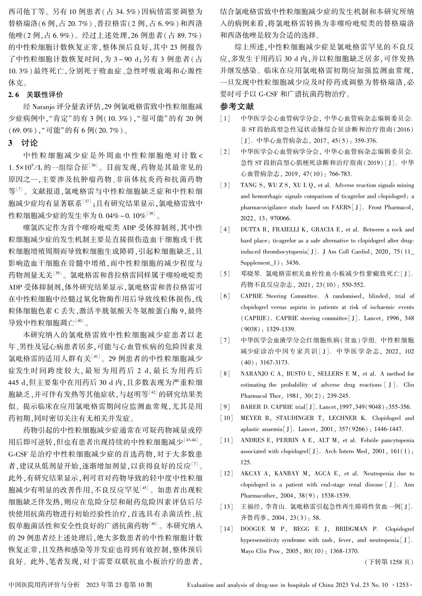 氯吡格雷致中性粒細(xì)胞減少癥的文獻(xiàn)病例分析