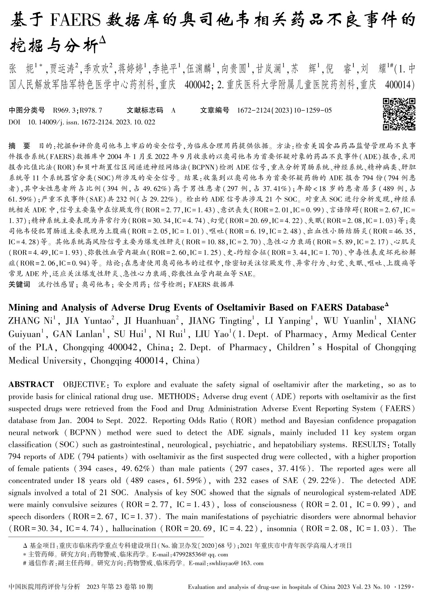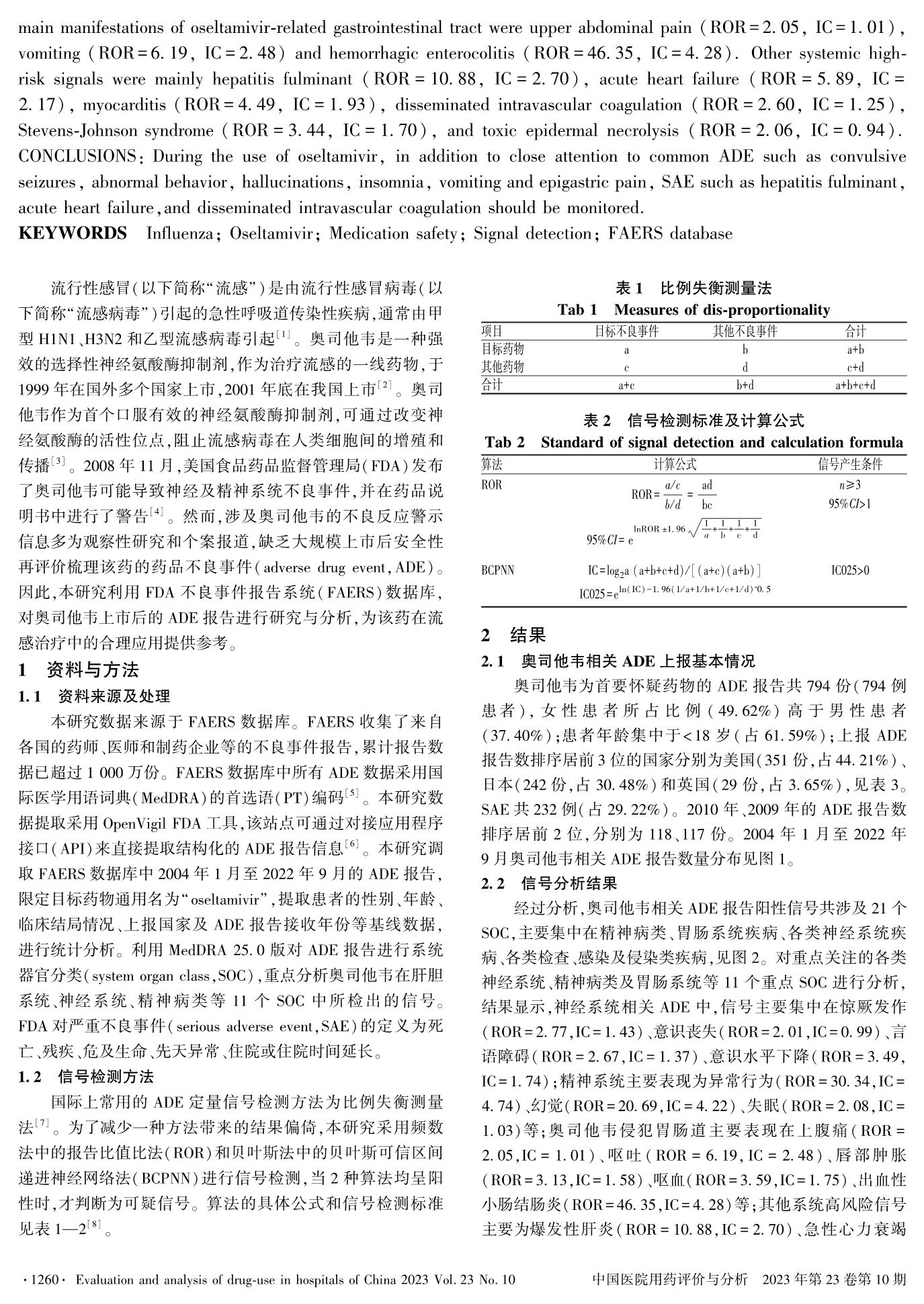 基于FAERS數(shù)據(jù)庫(kù)的奧司他韋相關(guān)藥品不良事件的挖掘與分析
