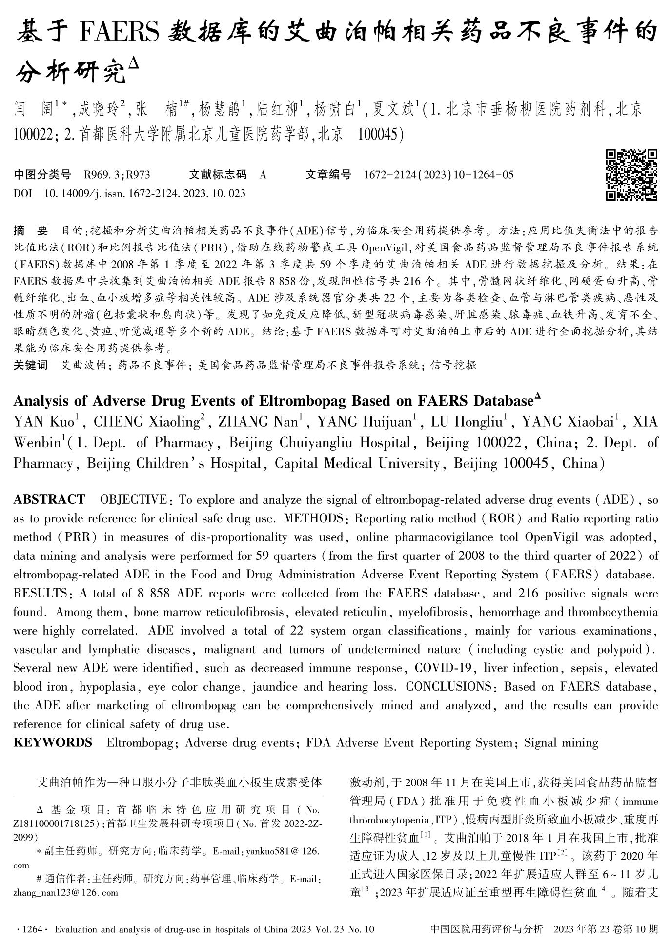 基于FAERS數(shù)據(jù)庫的艾曲泊帕相關(guān)藥品不良事件的分析研究
