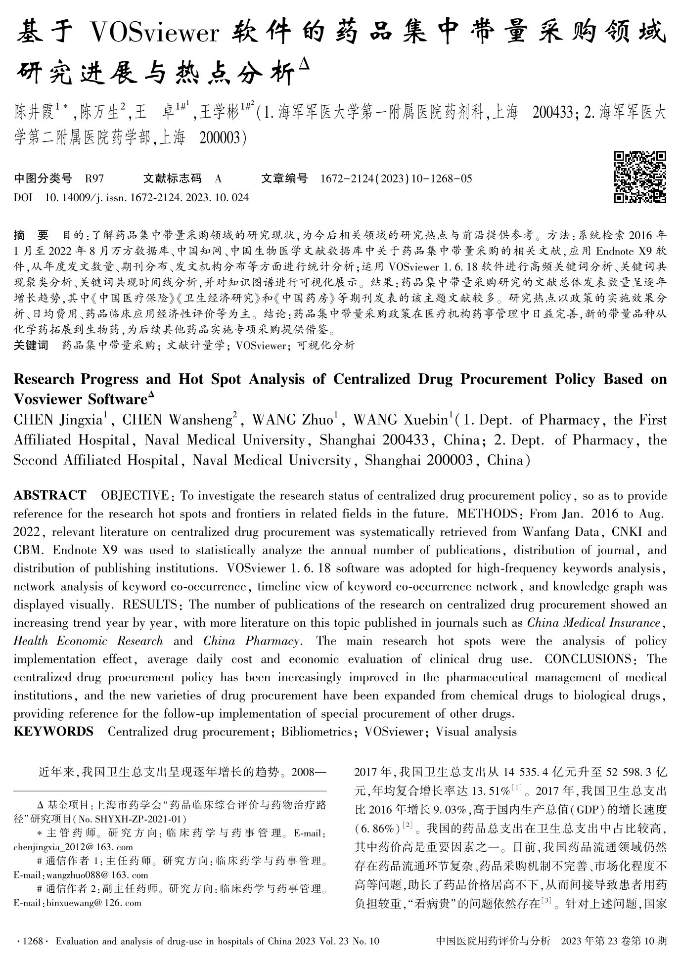基于VOSviewer軟件的藥品集中帶量采購領(lǐng)域研究進(jìn)展與熱點(diǎn)分析