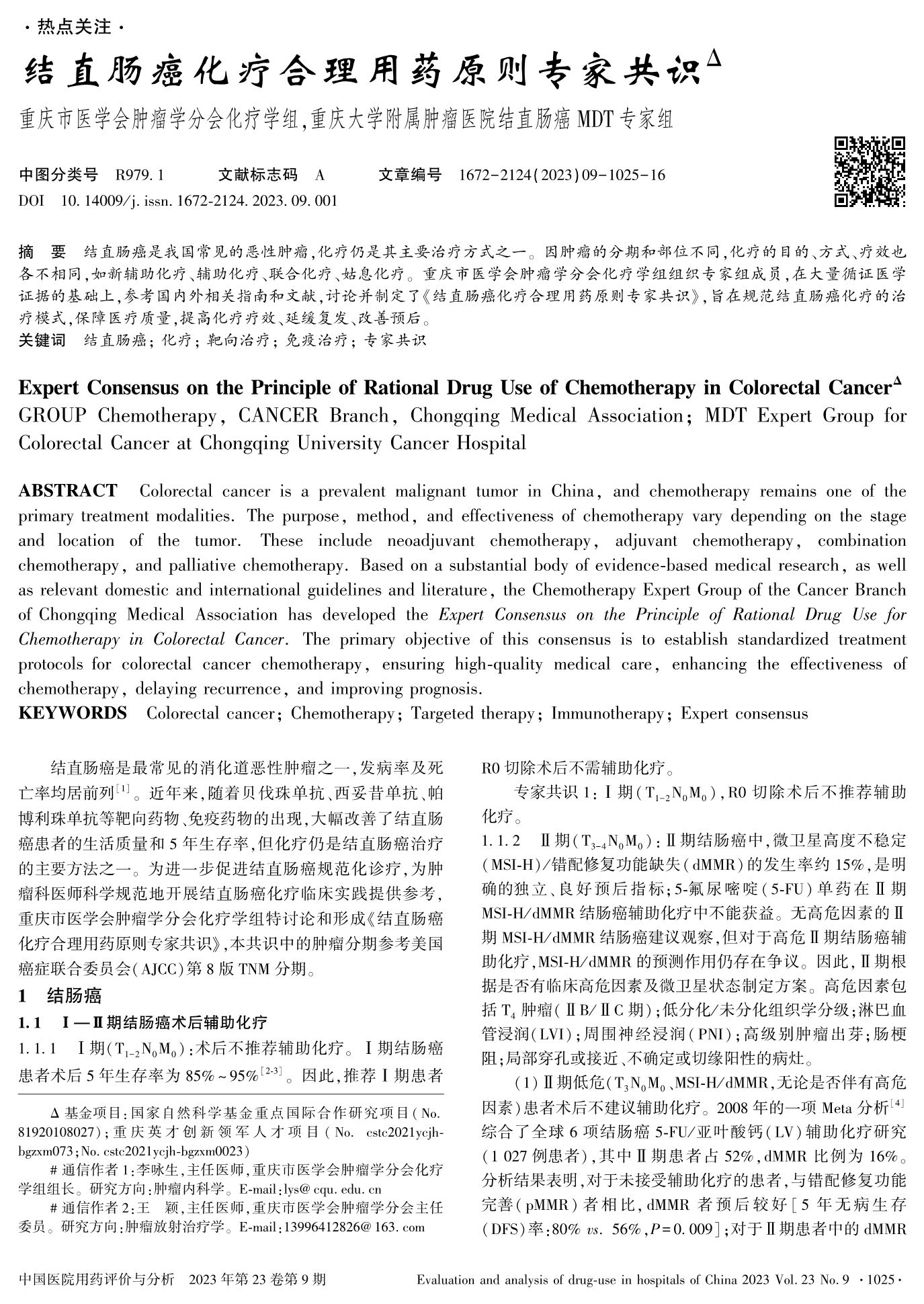 Author:重慶市醫(yī)學會腫瘤學分會化療學組、重慶大學附屬腫瘤醫(yī)院結(jié)直腸癌MDT專家組