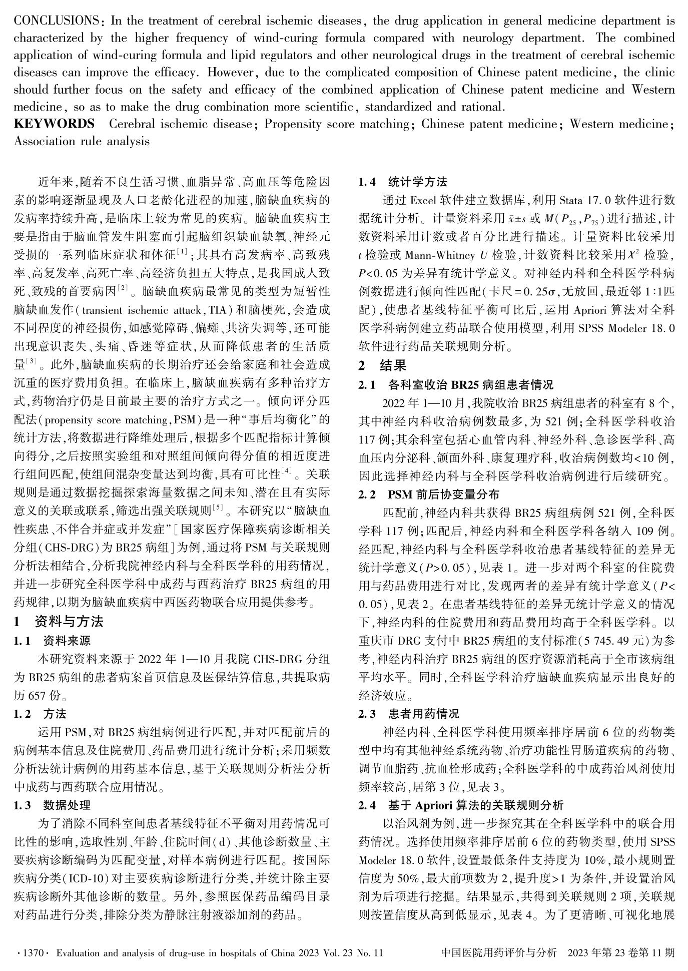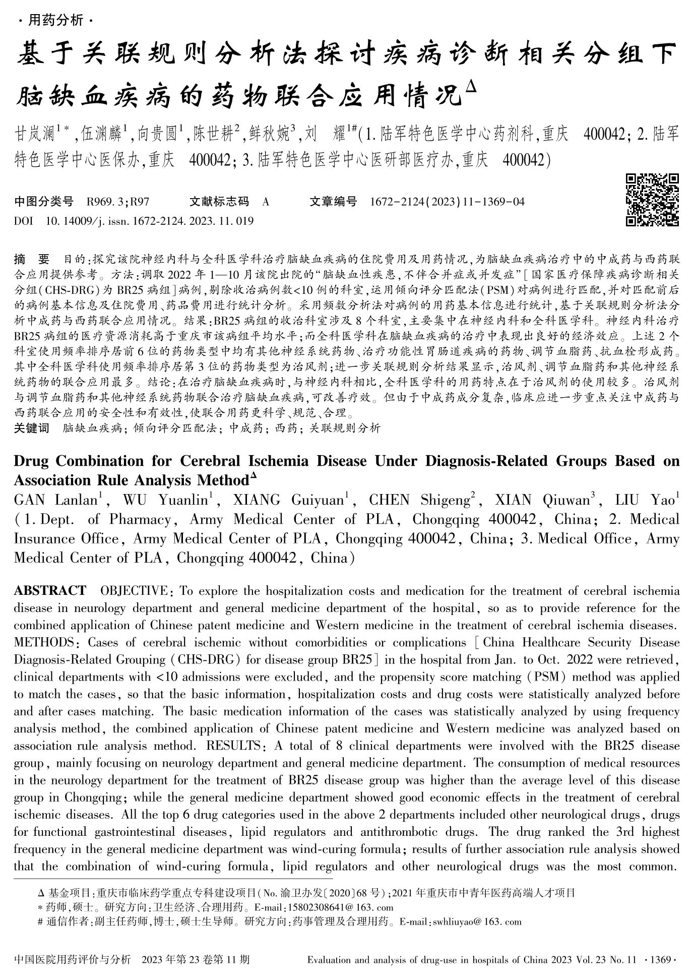 基于關(guān)聯(lián)規(guī)則分析法探討疾病診斷相關(guān)分組下腦缺血疾病的藥物聯(lián)合應(yīng)用情況