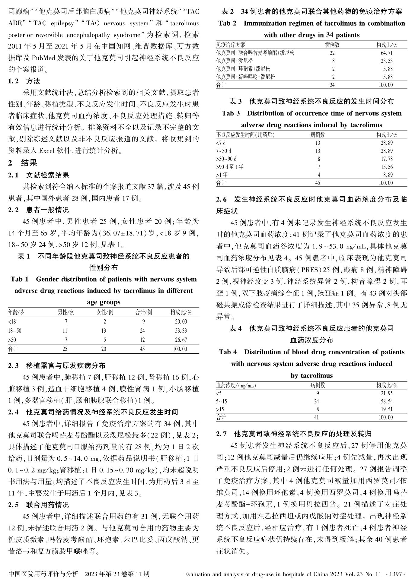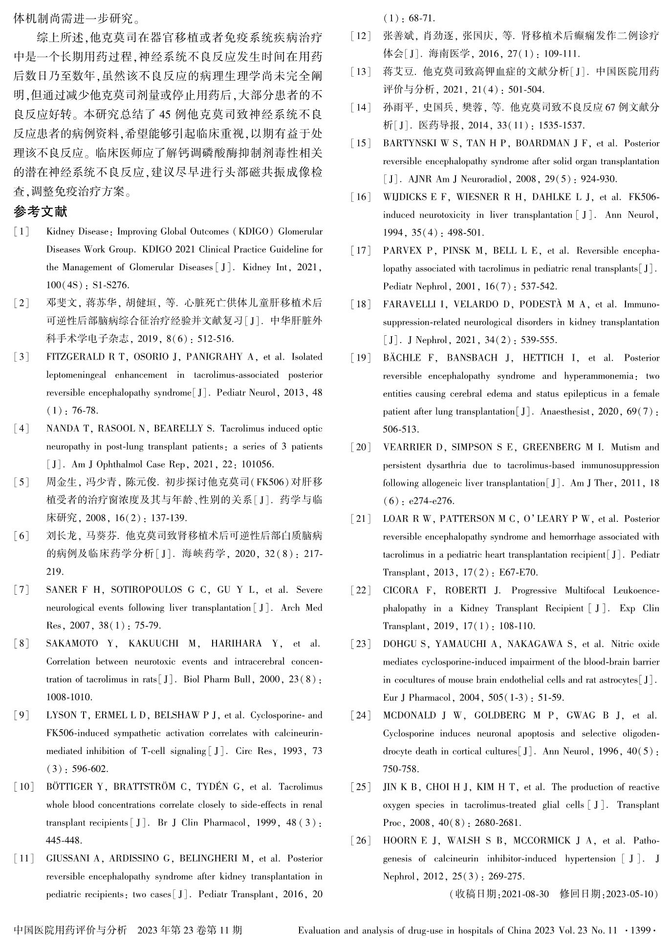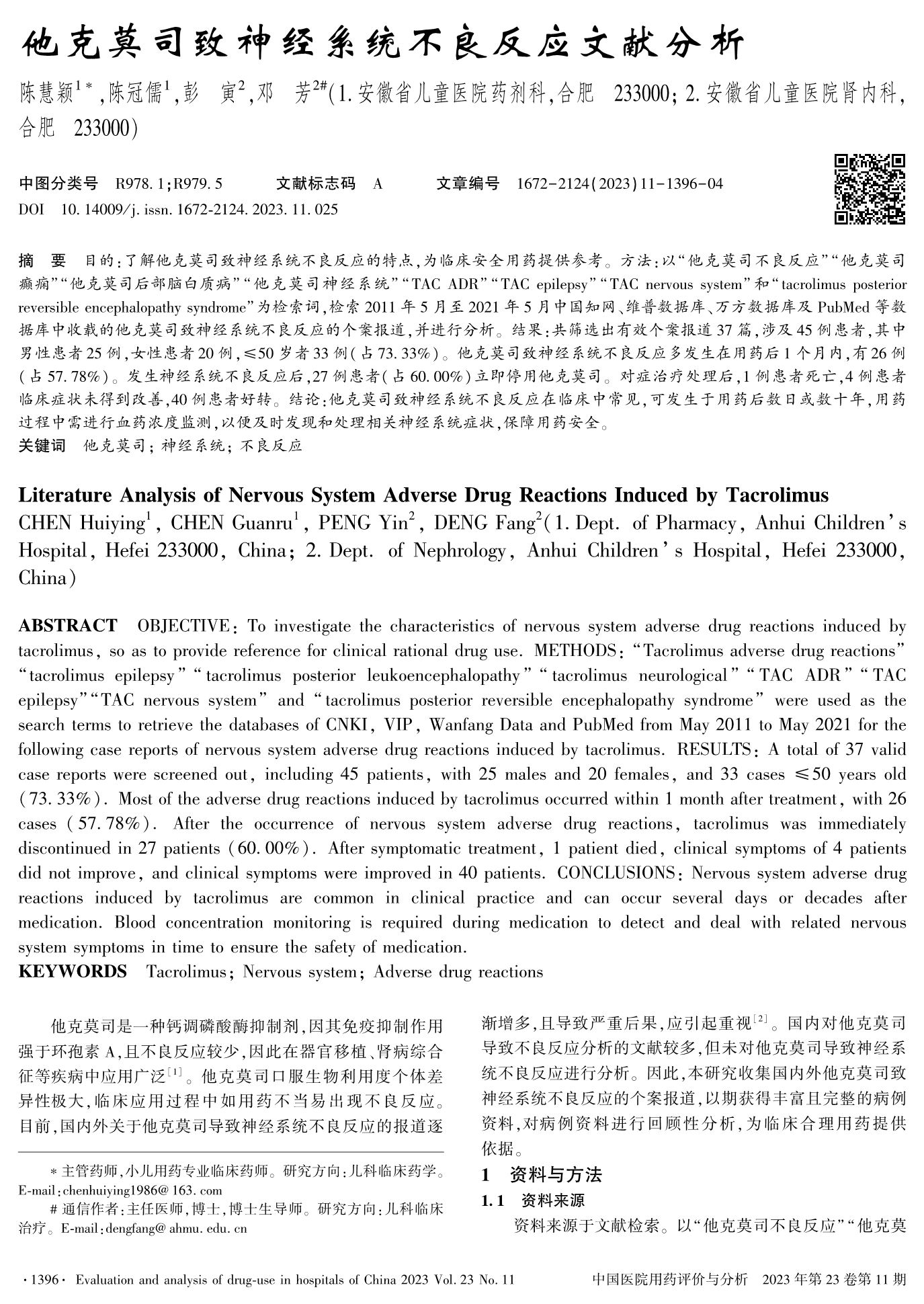 他克莫司致神經系統(tǒng)不良反應文獻分析