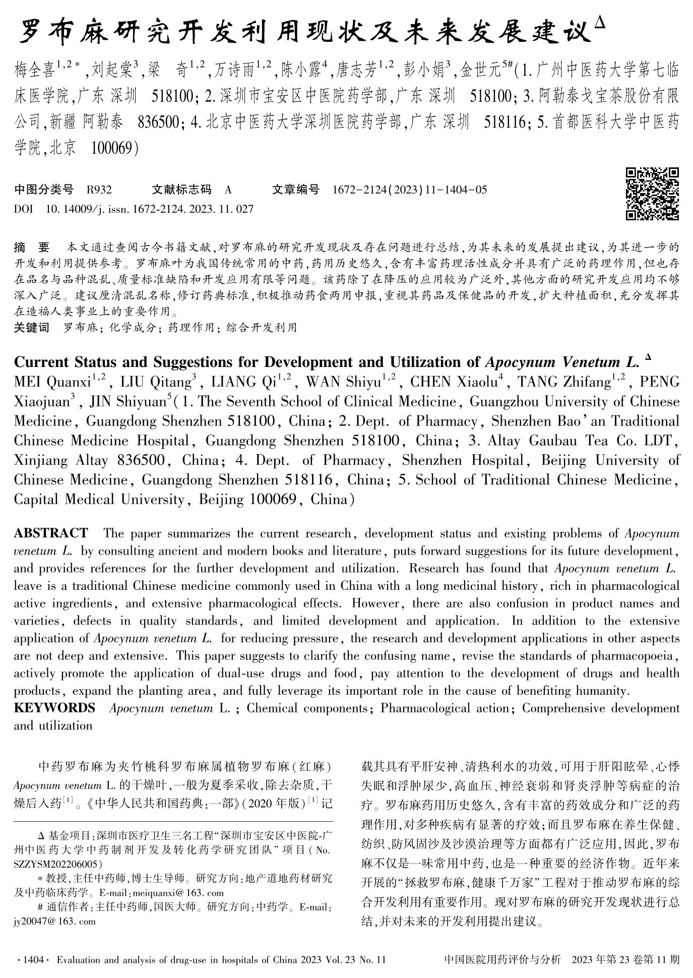 羅布麻研究開發(fā)利用現(xiàn)狀及未來發(fā)展建議