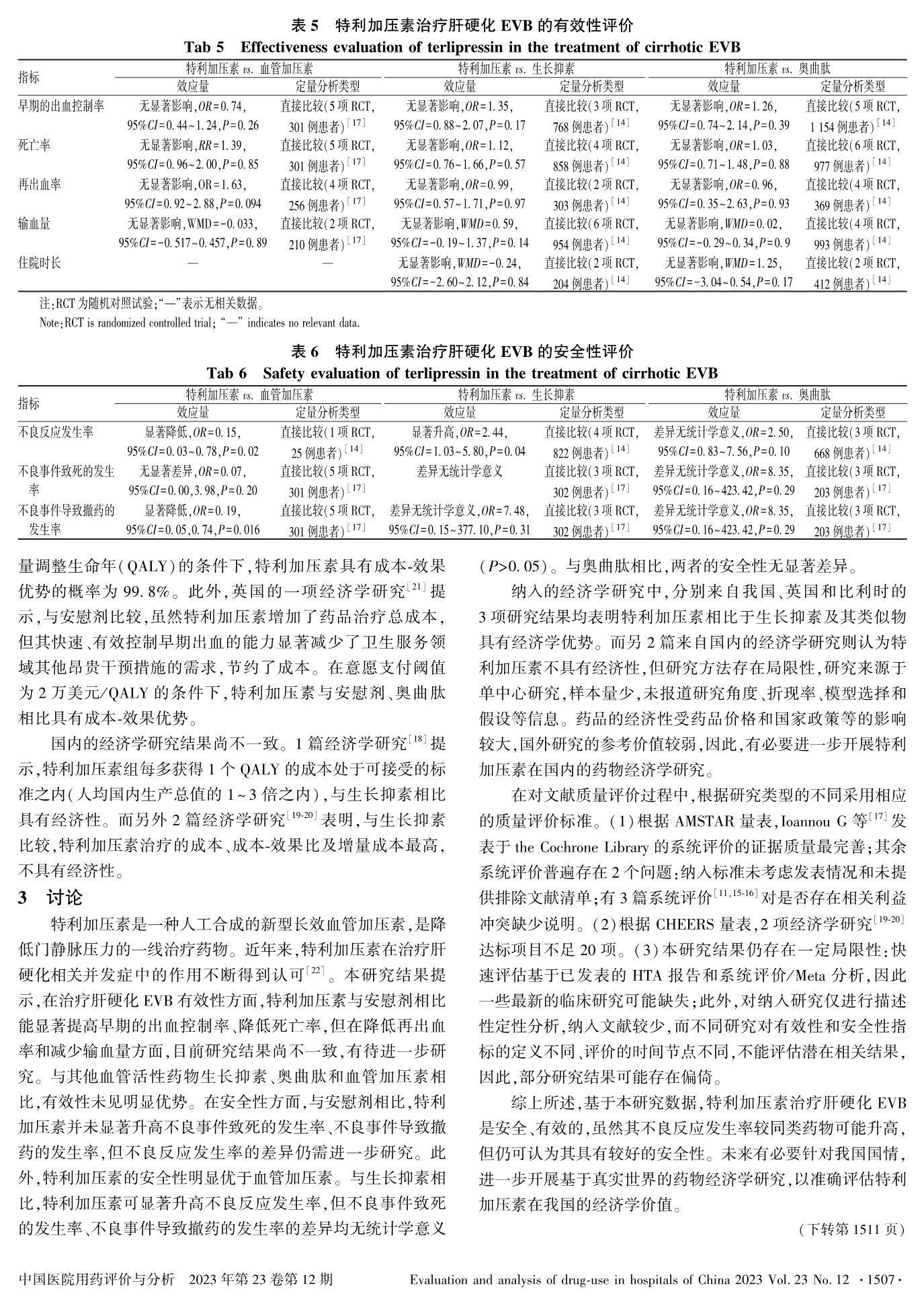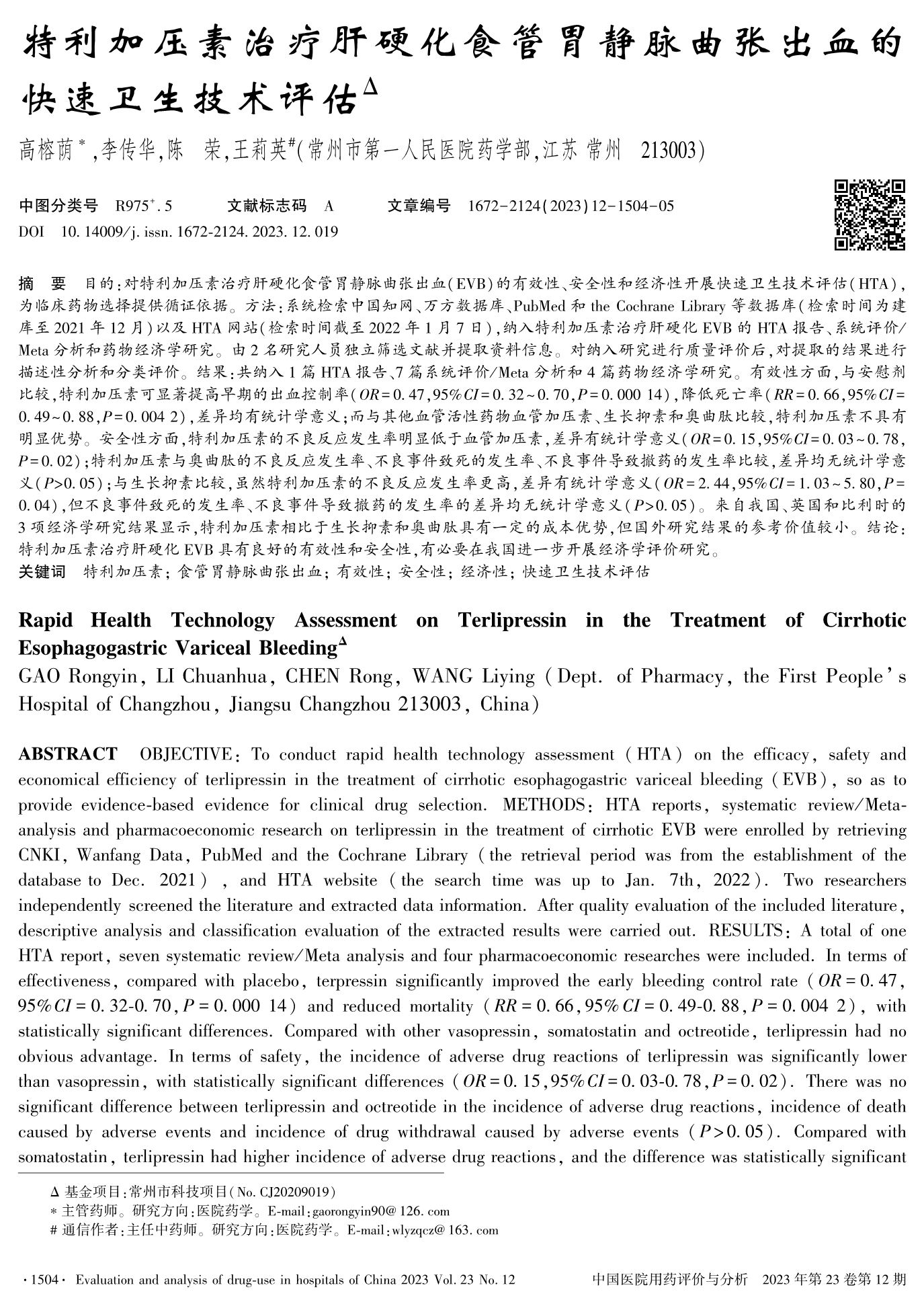 特利加壓素治療肝硬化食管胃靜脈曲張出血的快速衛(wèi)生技術(shù)評(píng)估