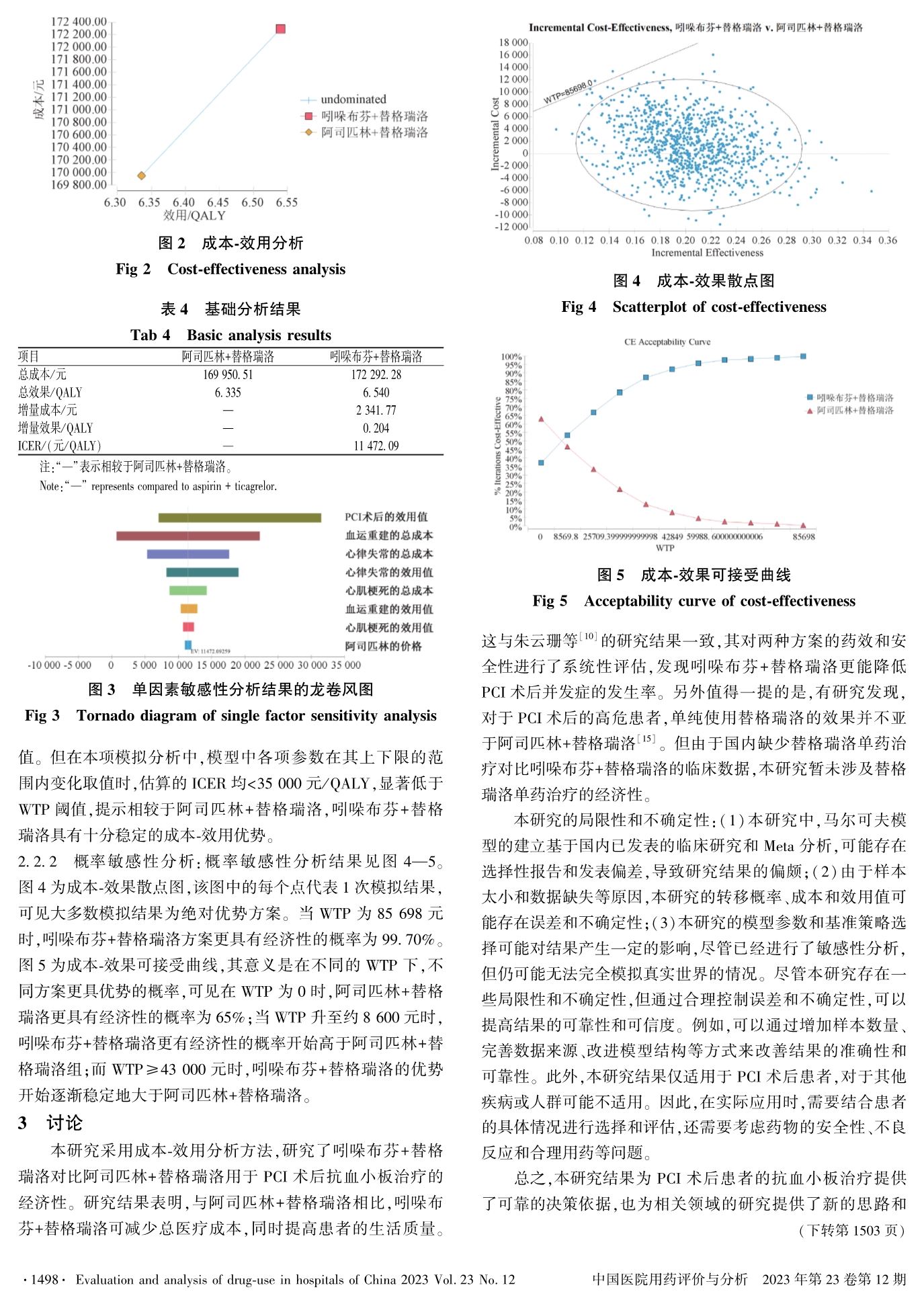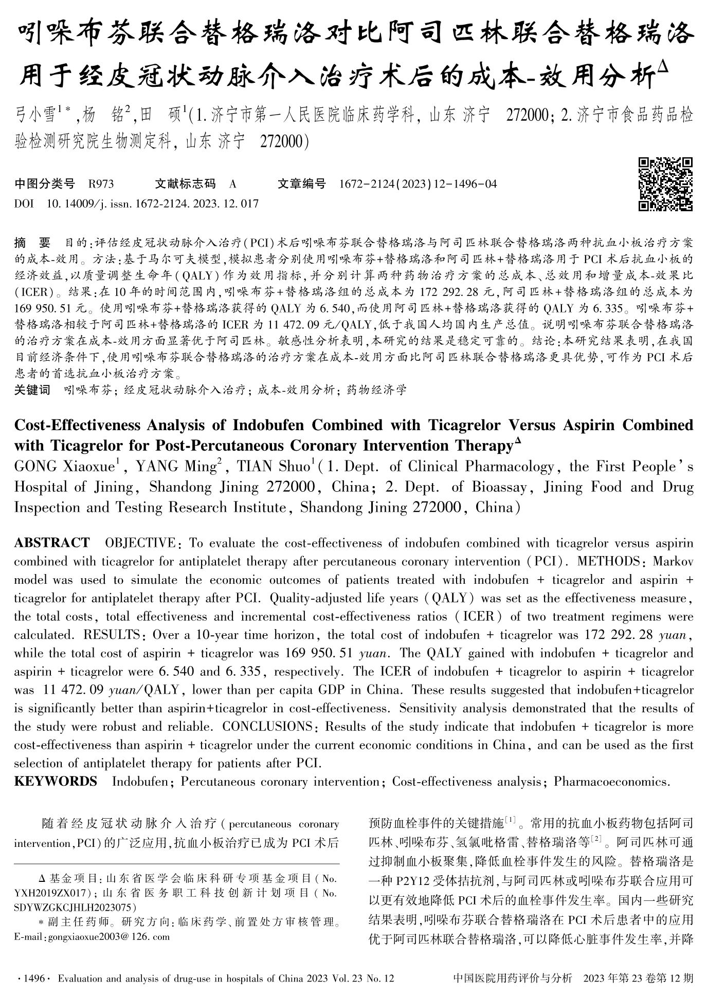 吲哚布芬聯(lián)合替格瑞洛對比阿司匹林聯(lián)合替格瑞洛用于經(jīng)皮冠狀動脈介入治療術(shù)后的成本-效用分析