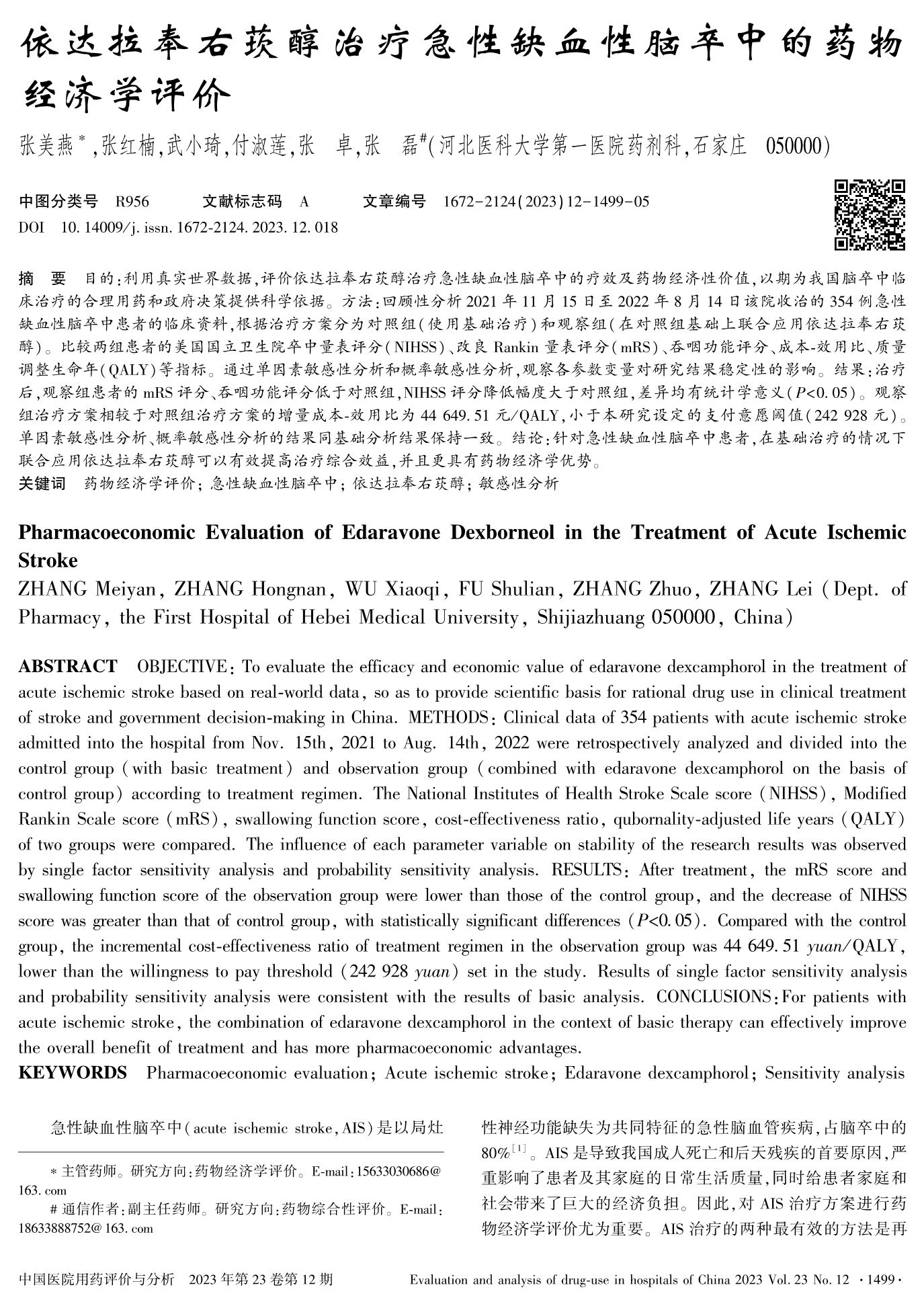 依達(dá)拉奉右莰醇治療急性缺血性腦卒中的藥物經(jīng)濟(jì)學(xué)評(píng)價(jià)