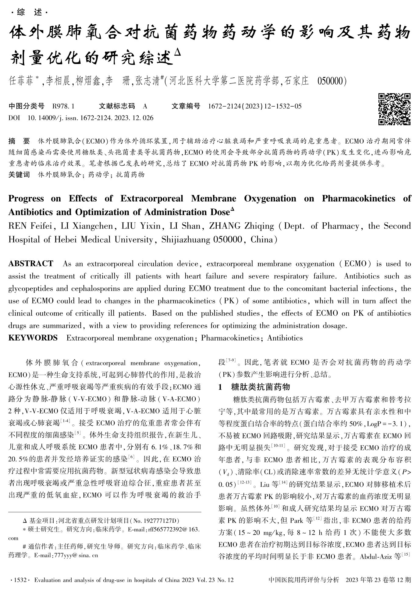 體外膜肺氧合對抗菌藥物藥動學(xué)的影響及其藥物劑量優(yōu)化的研究綜述