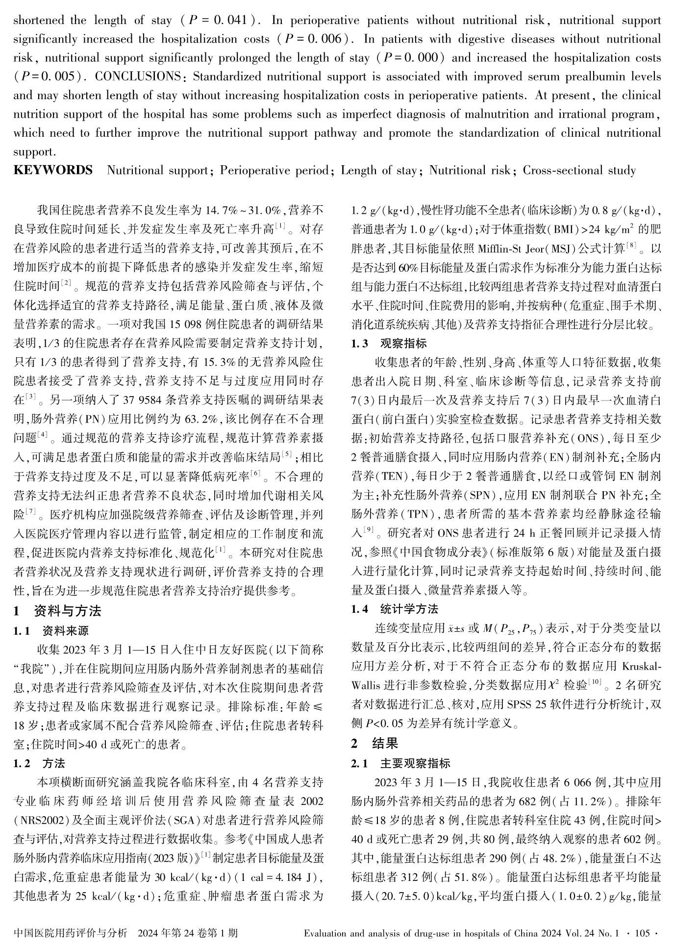 北京某三級甲等醫(yī)院營養(yǎng)支持現(xiàn)狀橫斷面調(diào)研分析
