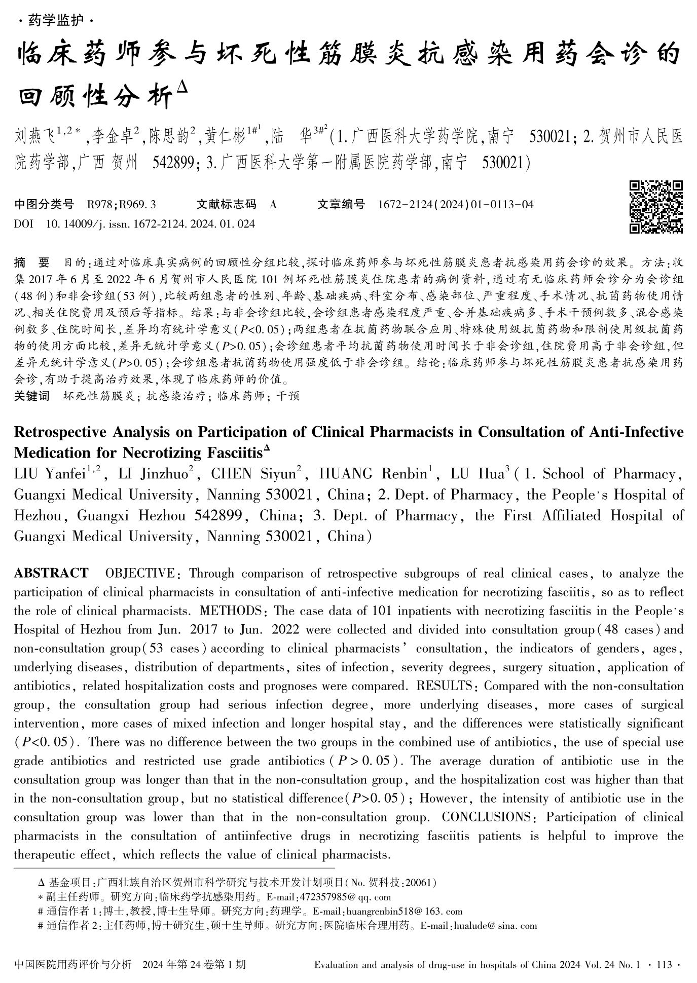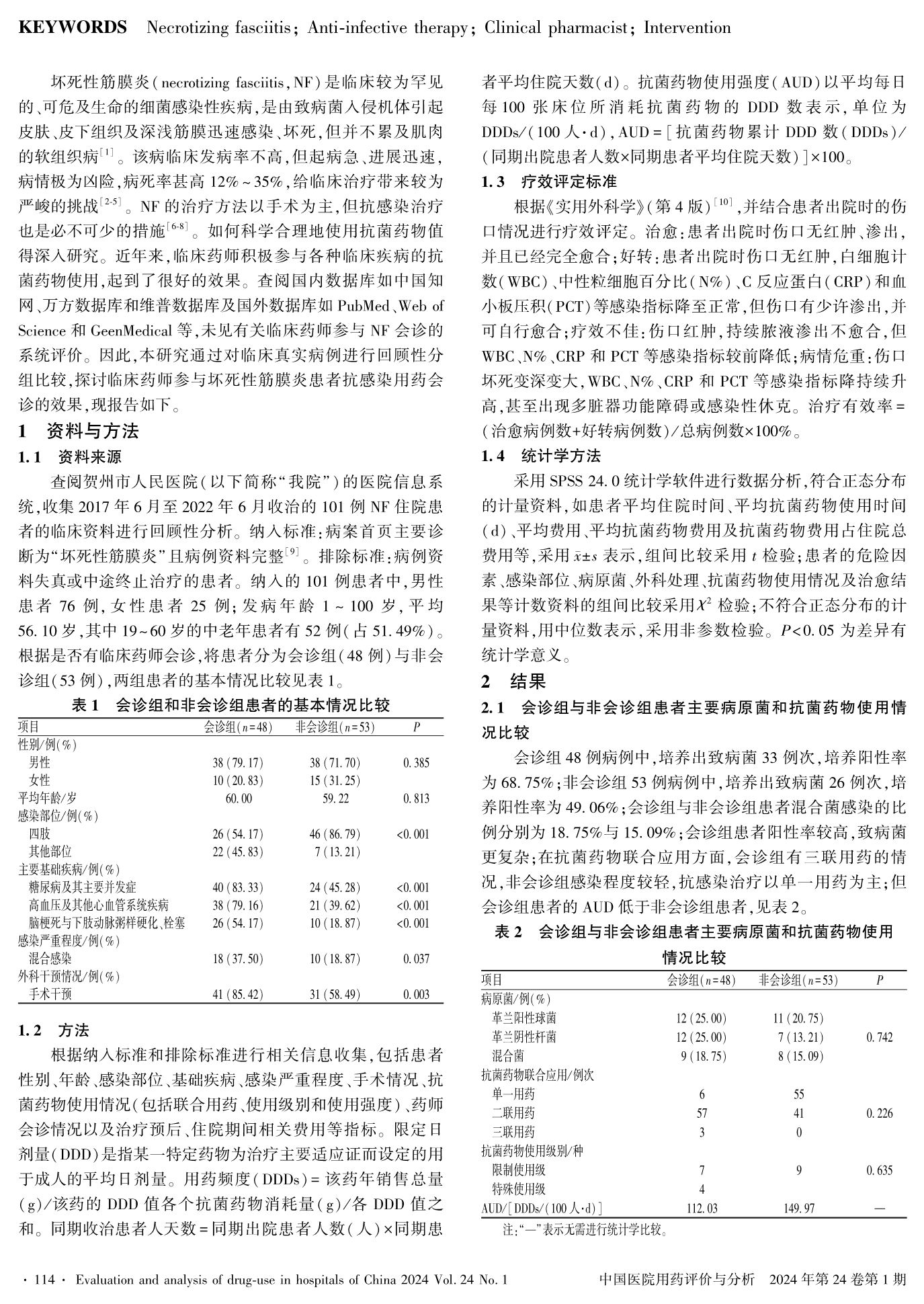 臨床藥師參與壞死性筋膜炎抗感染用藥會診的回顧性分析