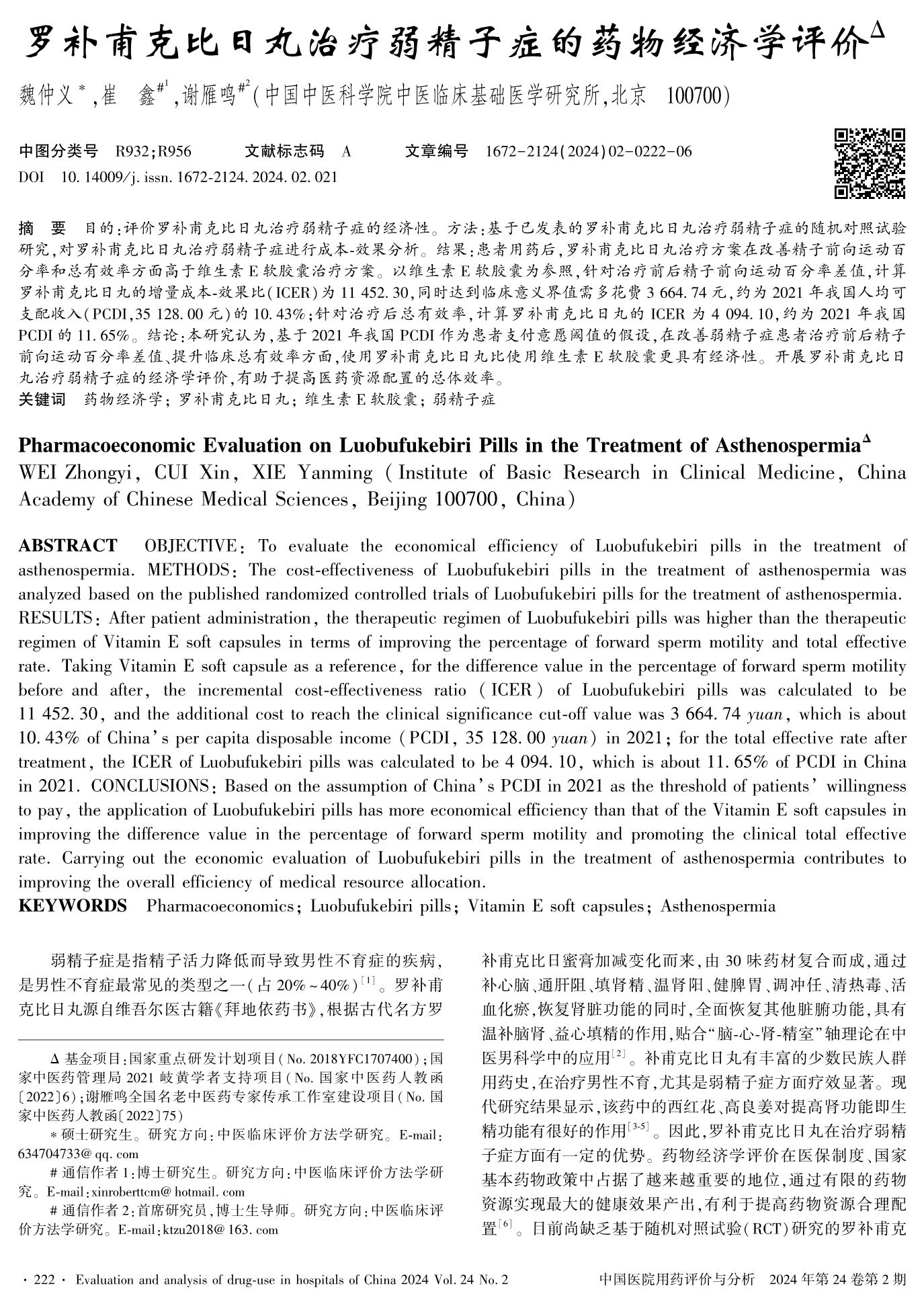 Pharmacoeconomic Evaluation on Luobufukebiri Pills in the Treatment of Asthenospermia