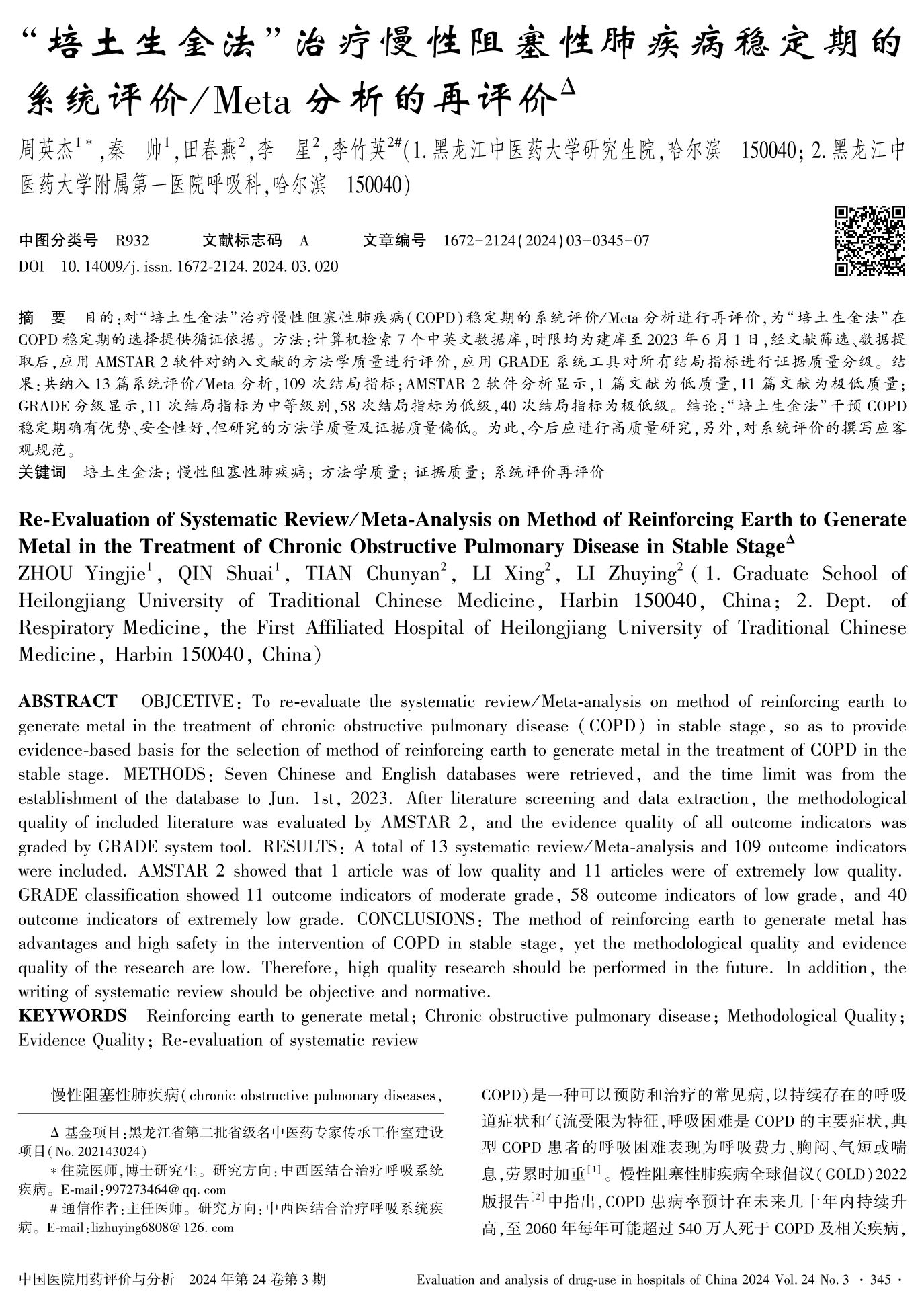 Re-Evaluation of Systematic Review/ Meta-Analysis on Method of Reinforcing Earth to Generate Metal in the Treatment of Chronic Obstructive Pulmonary Disease in Stable Stage