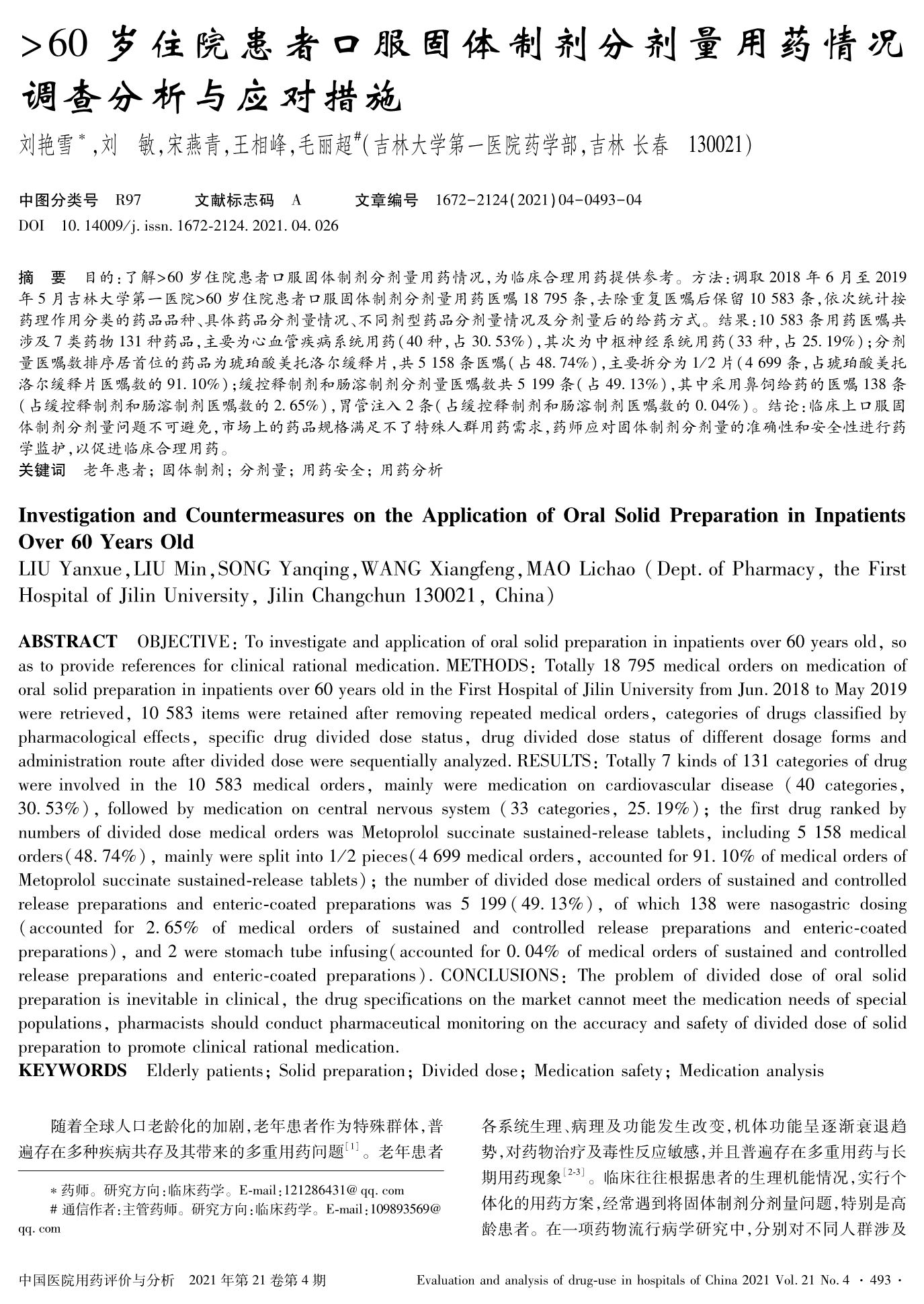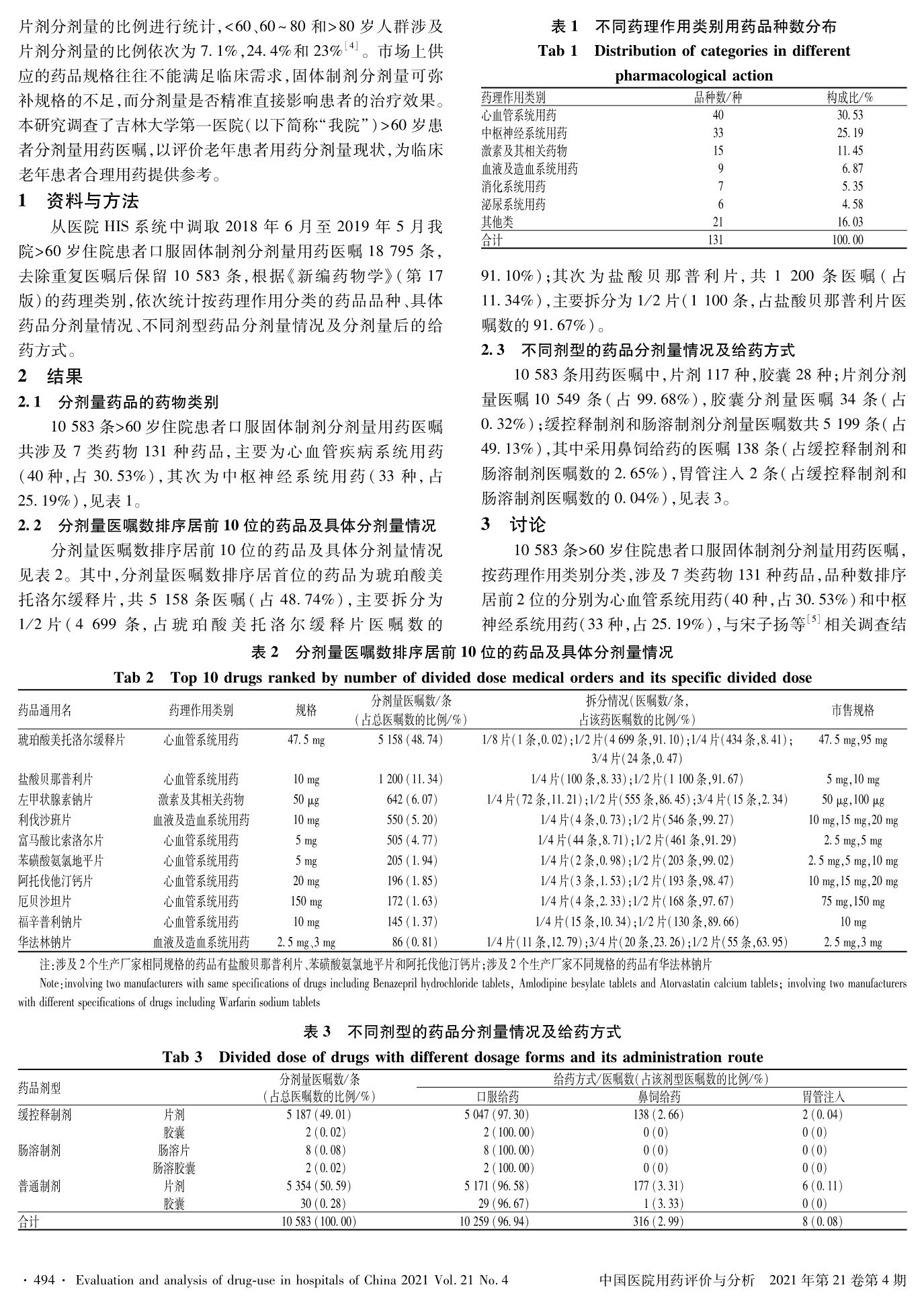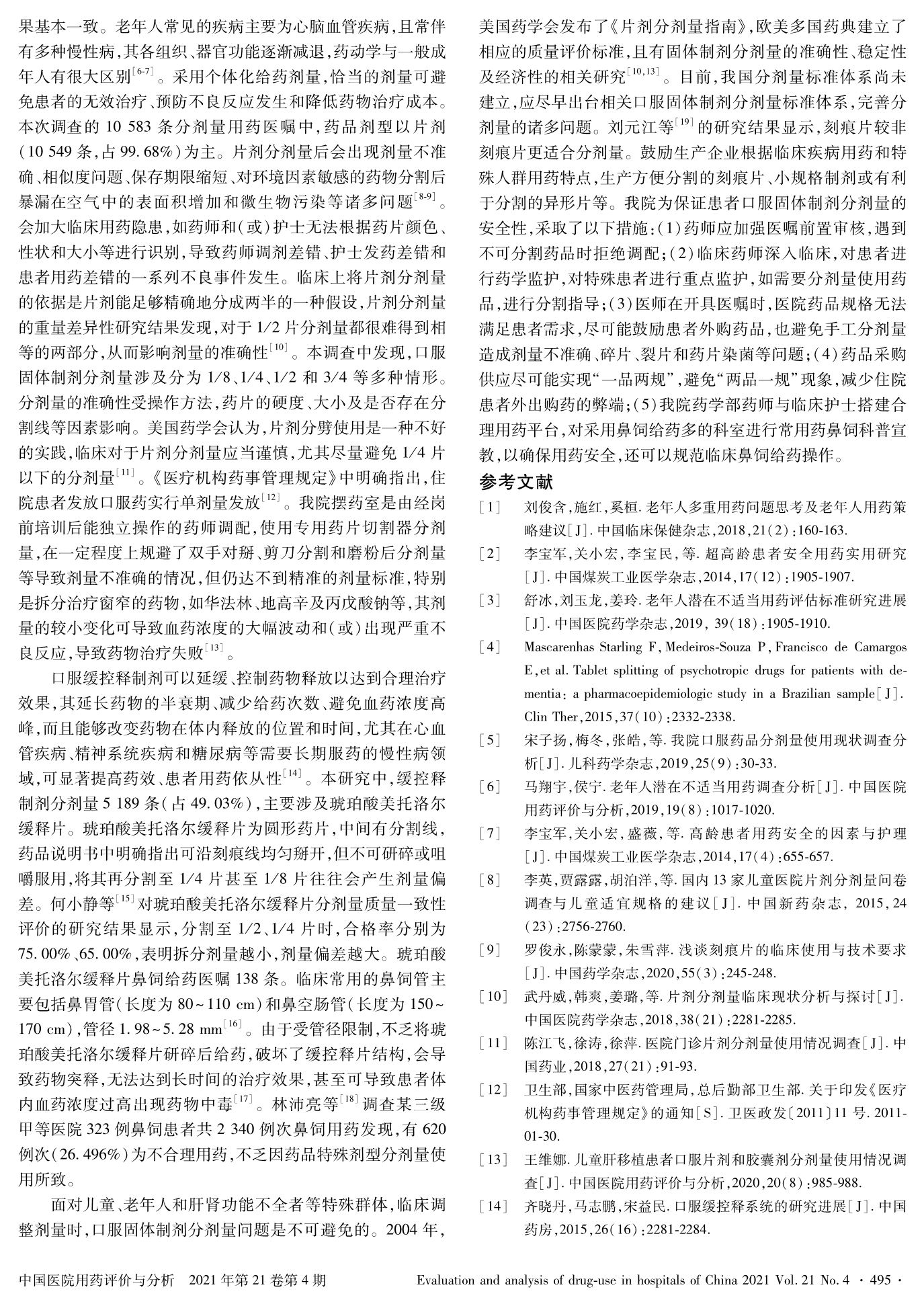 >60歲住院患者口服固體制劑分劑量用藥情況調(diào)查分析與應(yīng)對措施