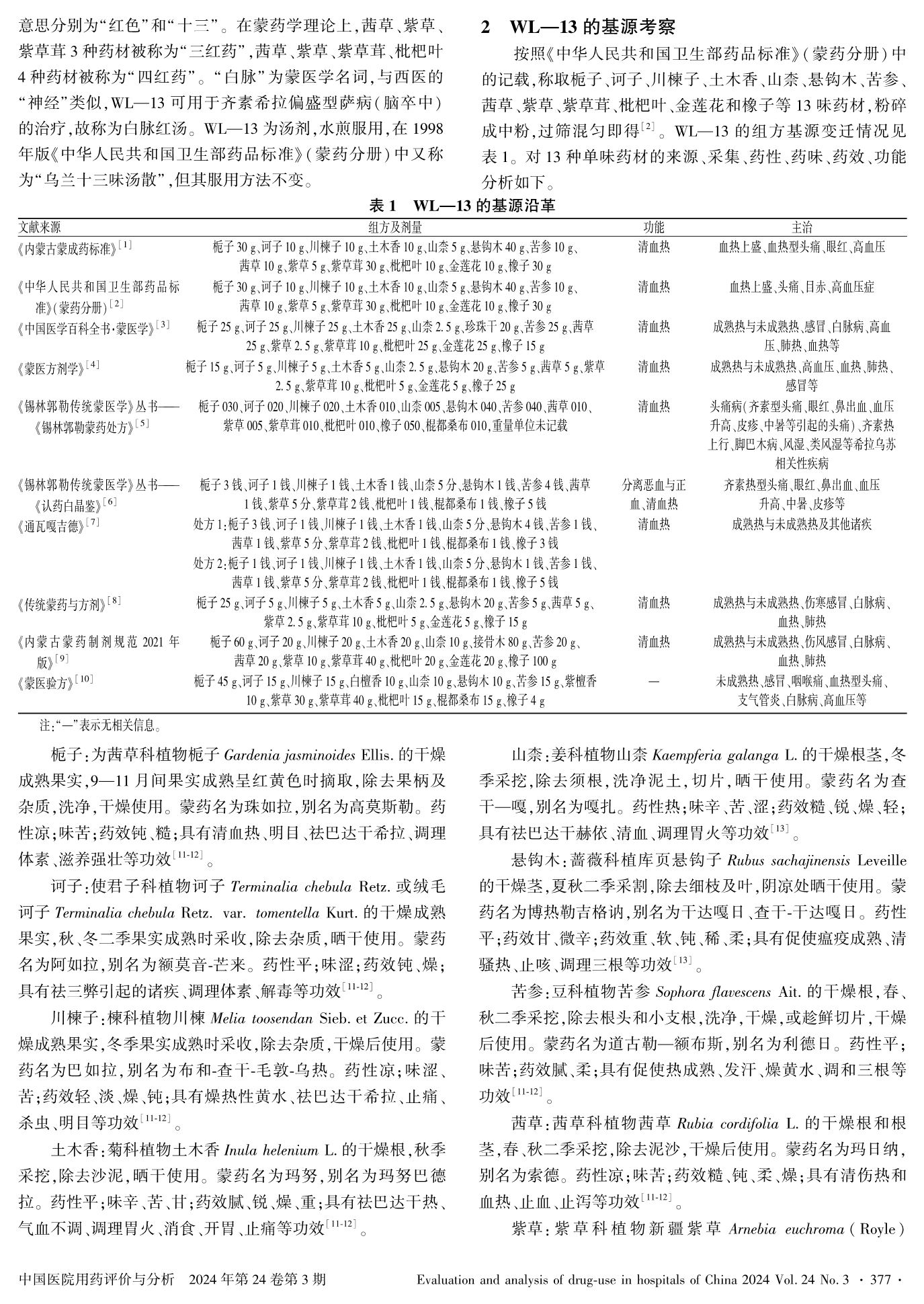 蒙藥烏蘭—13味湯方源考證及研究概況