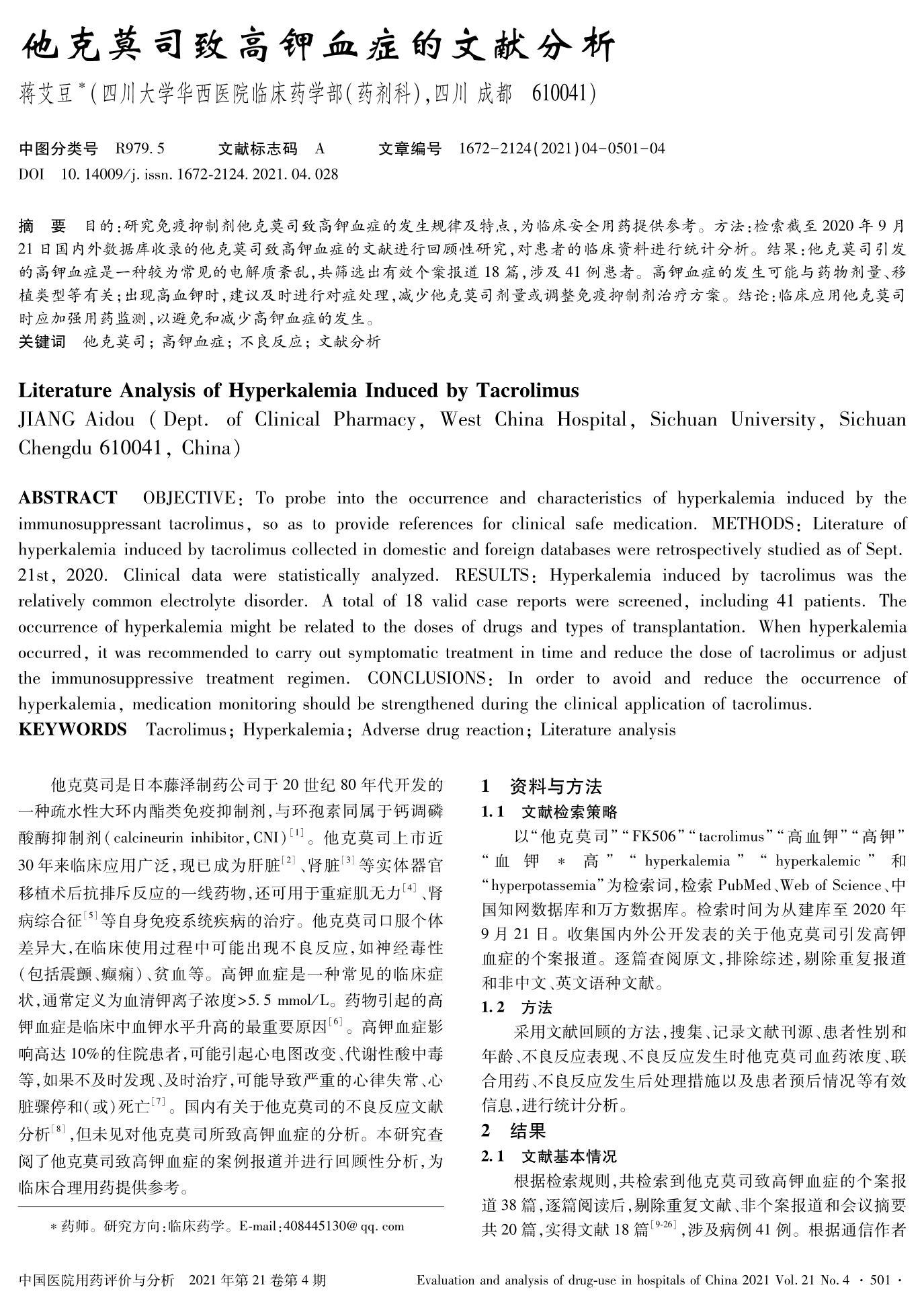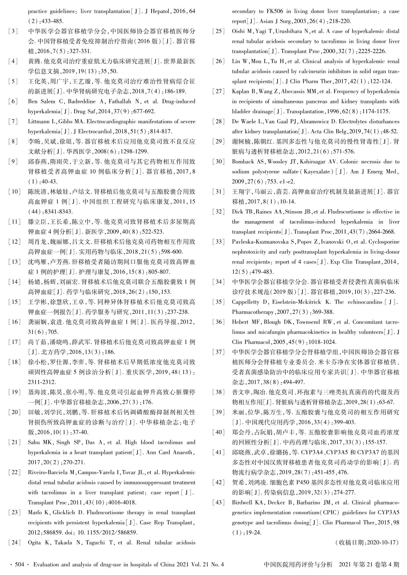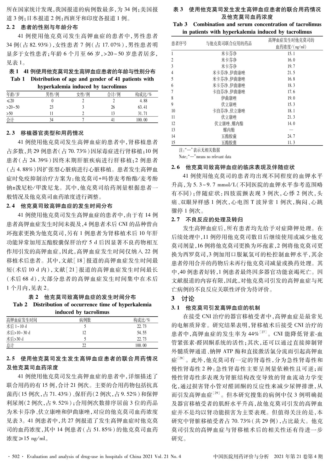 他克莫司致高鉀血癥的文獻(xiàn)分析