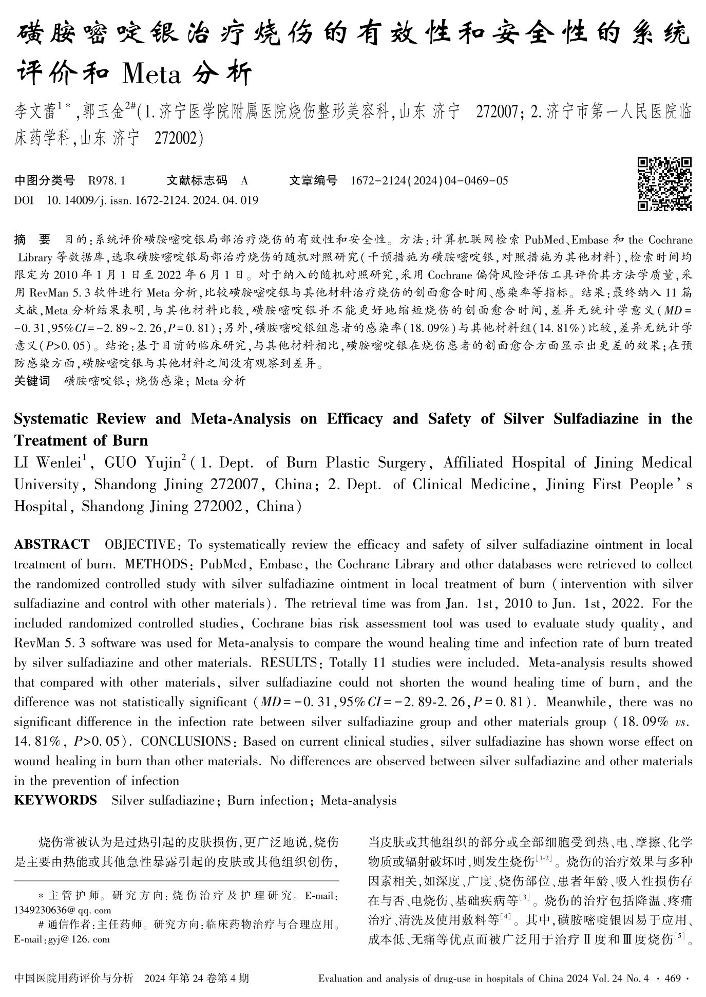 磺胺嘧啶銀治療燒傷的有效性和安全性的系統(tǒng)評價和Meta分析