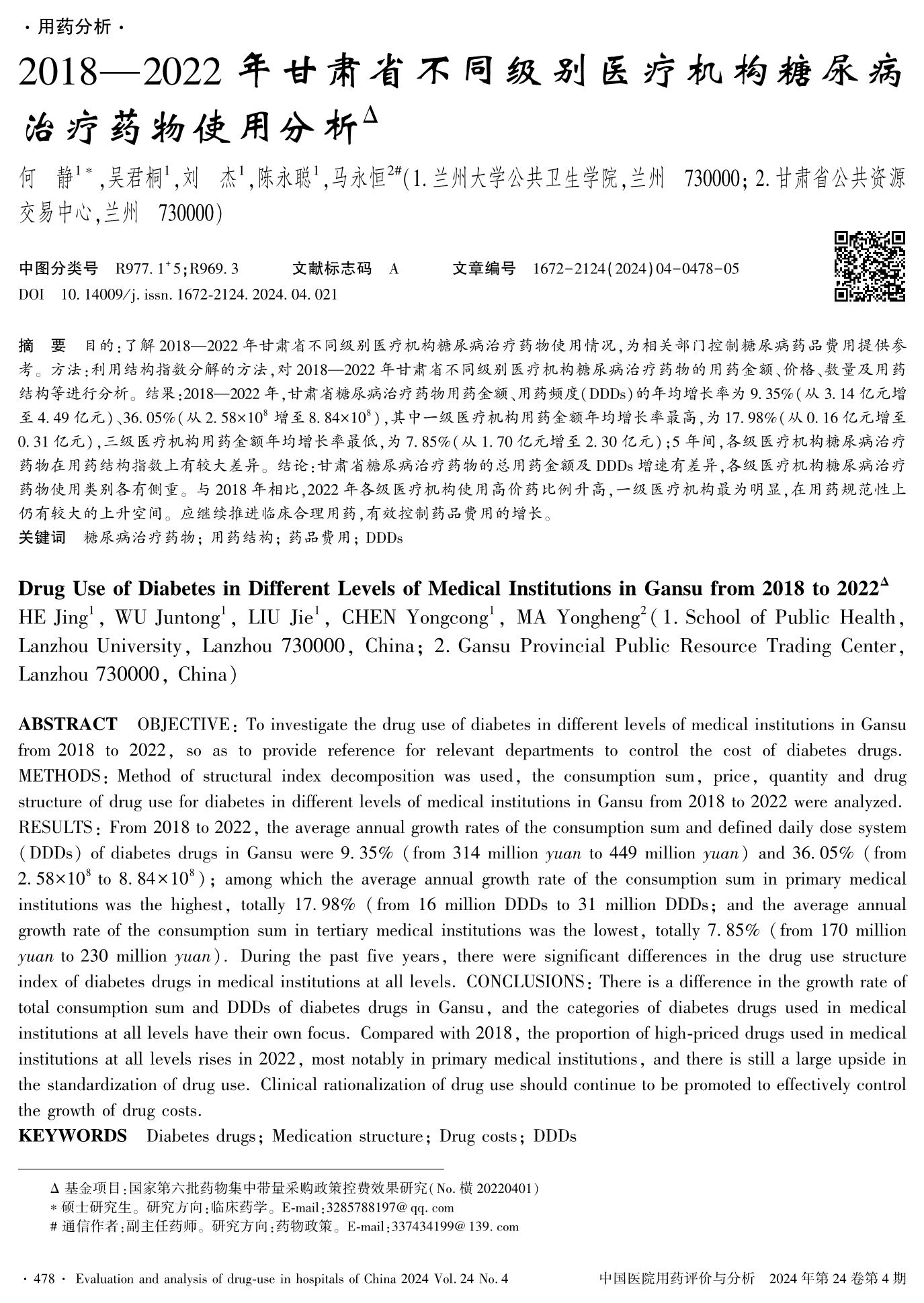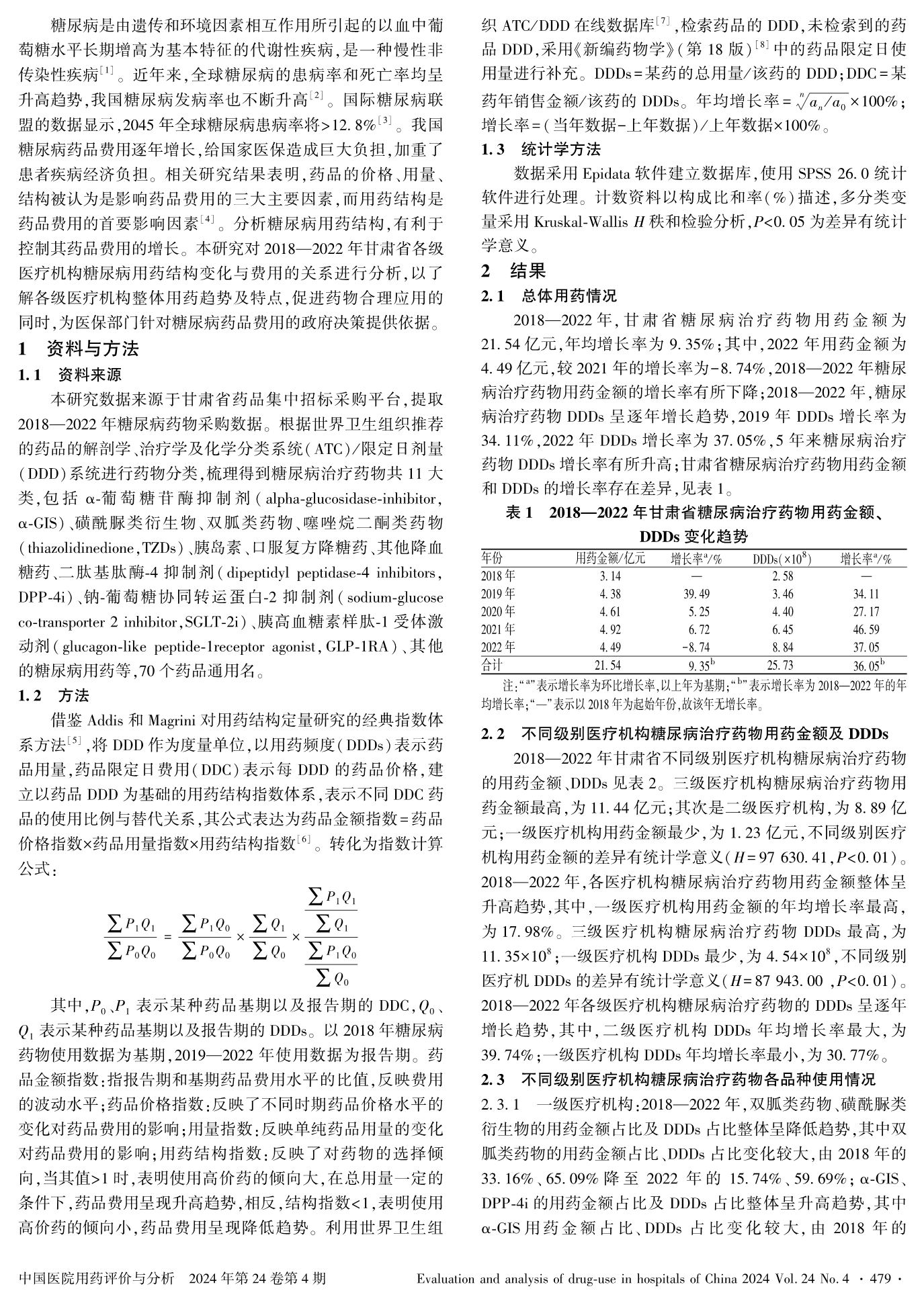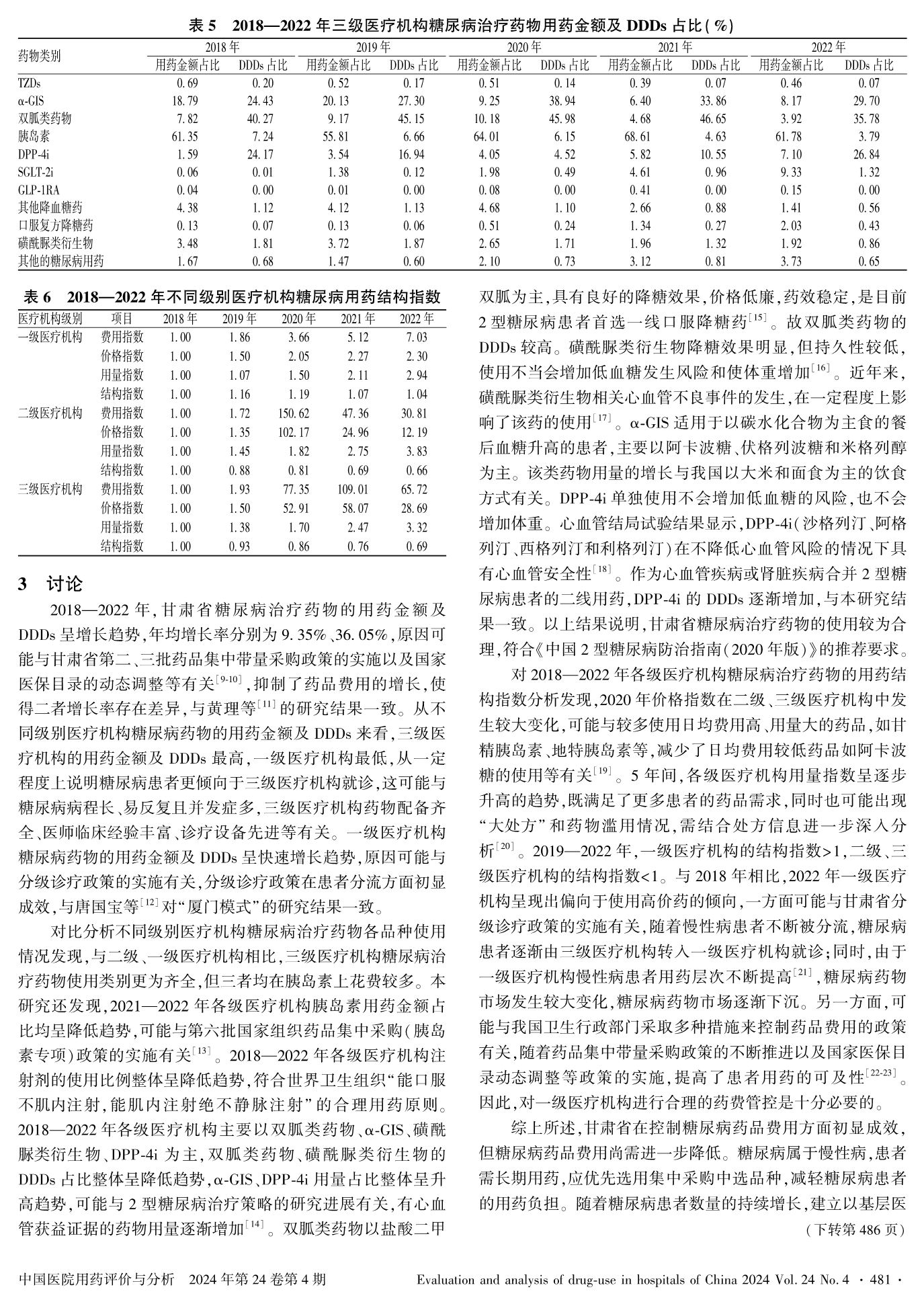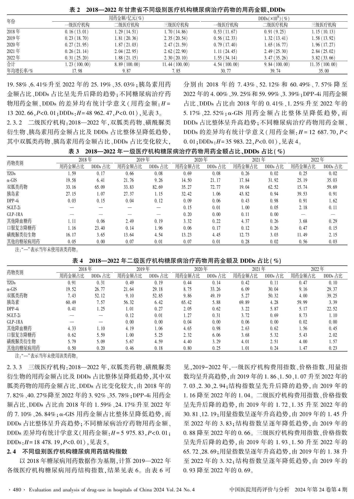 2018—2022年甘肅省不同級別醫(yī)療機構(gòu)糖尿病治療藥物使用分析