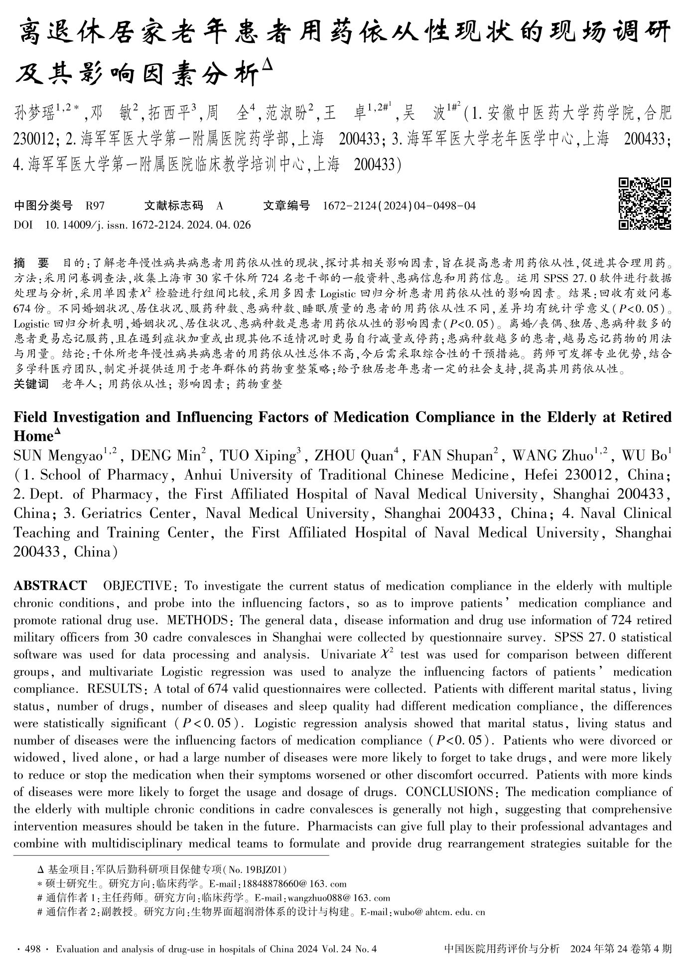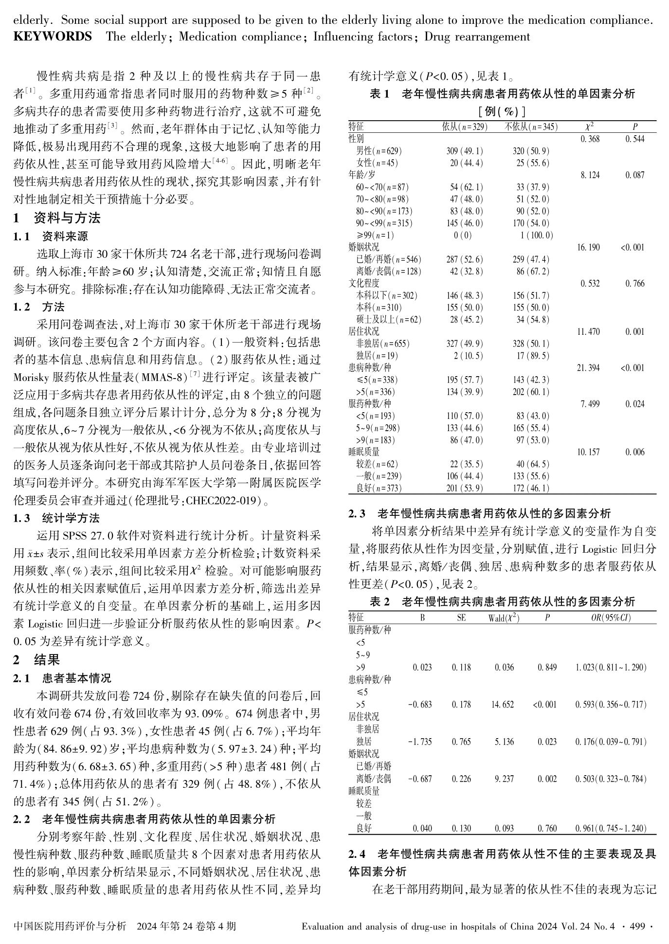 離退休居家老年患者用藥依從性現(xiàn)狀的現(xiàn)場調(diào)研及其影響因素分析