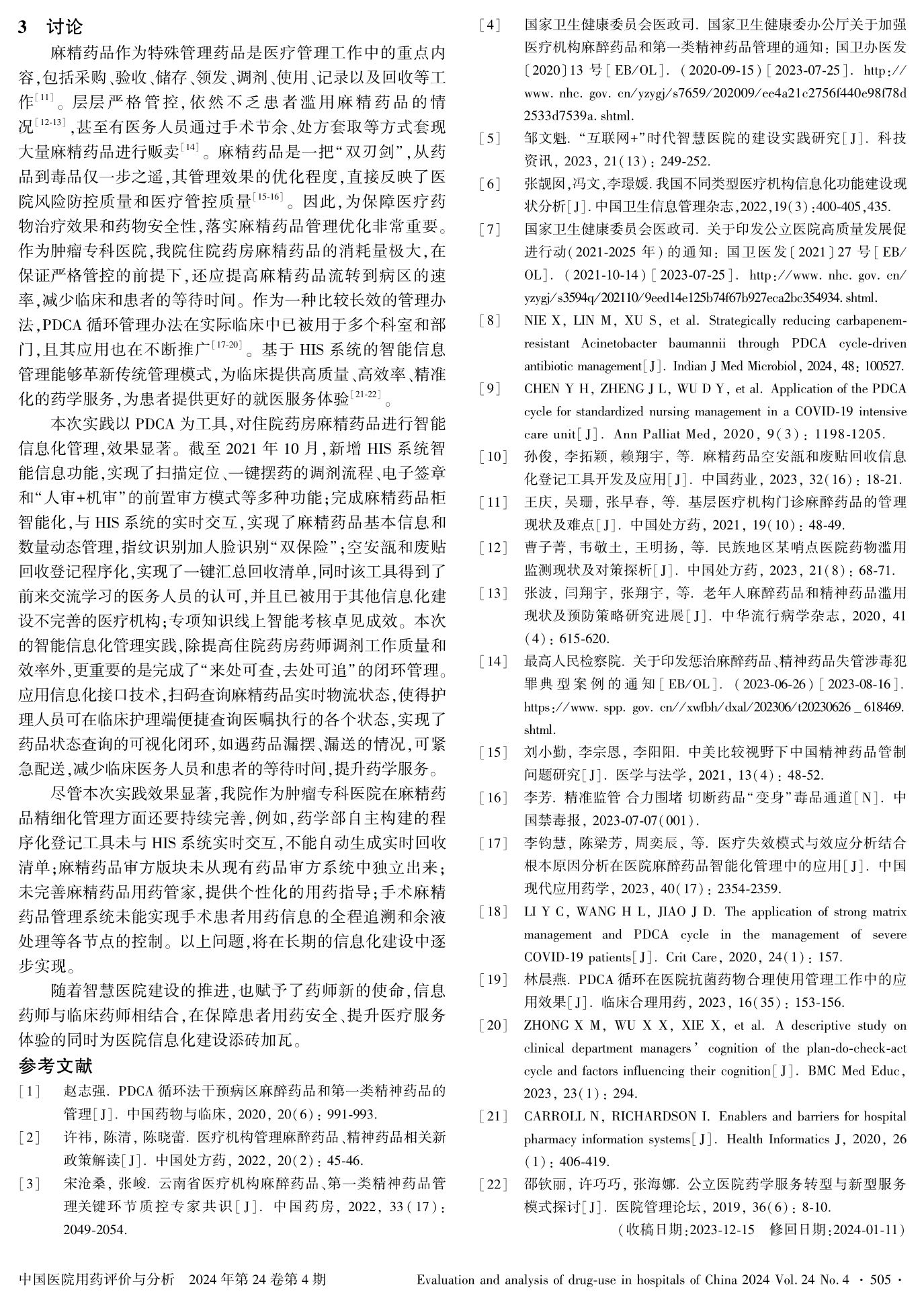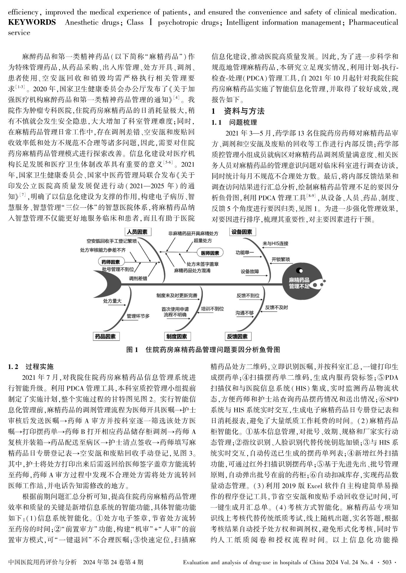 Practical Effect of Intelligent Information Management of Anesthetic Drugs and Class Ⅰ Psychotropic Drugs Management in Inpatient Pharmacy