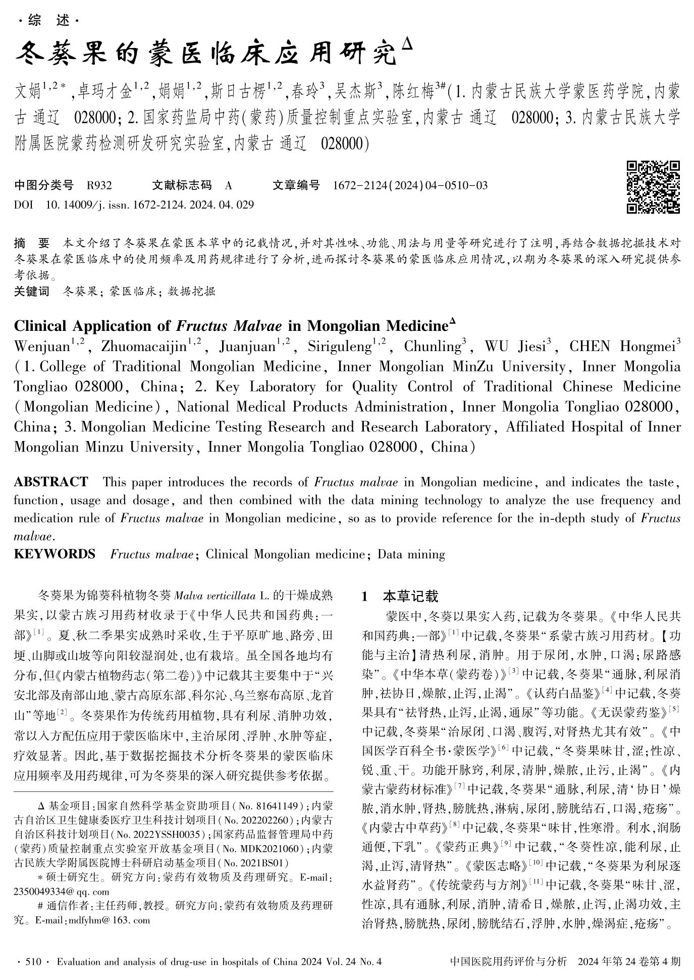 冬葵果的蒙醫(yī)臨床應(yīng)用研究