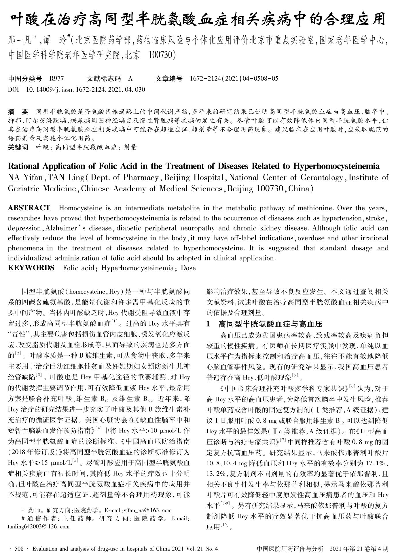 葉酸在治療高同型半胱氨酸血癥相關(guān)疾病中的合理應(yīng)用