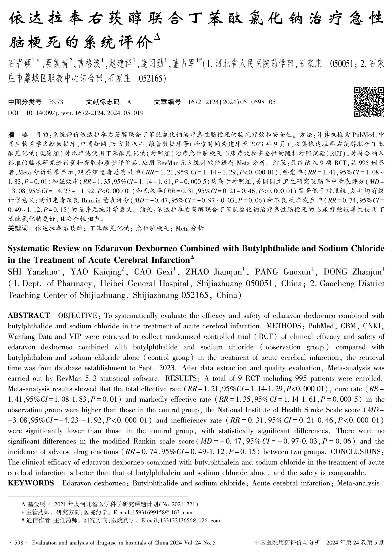 依達拉奉右莰醇聯(lián)合丁苯酞氯化鈉治療急性腦梗死的系統(tǒng)評價
