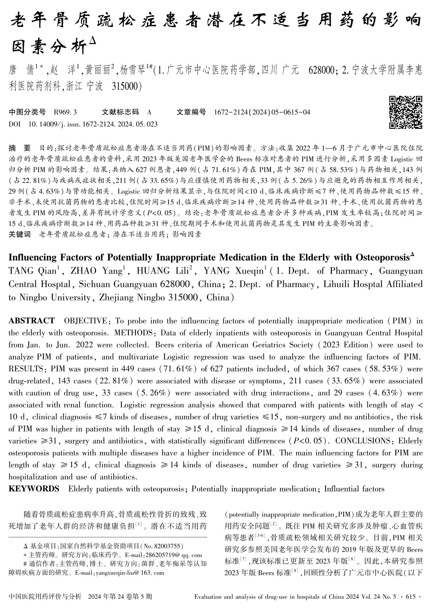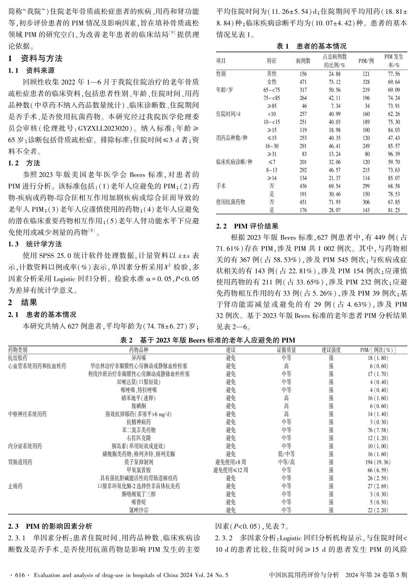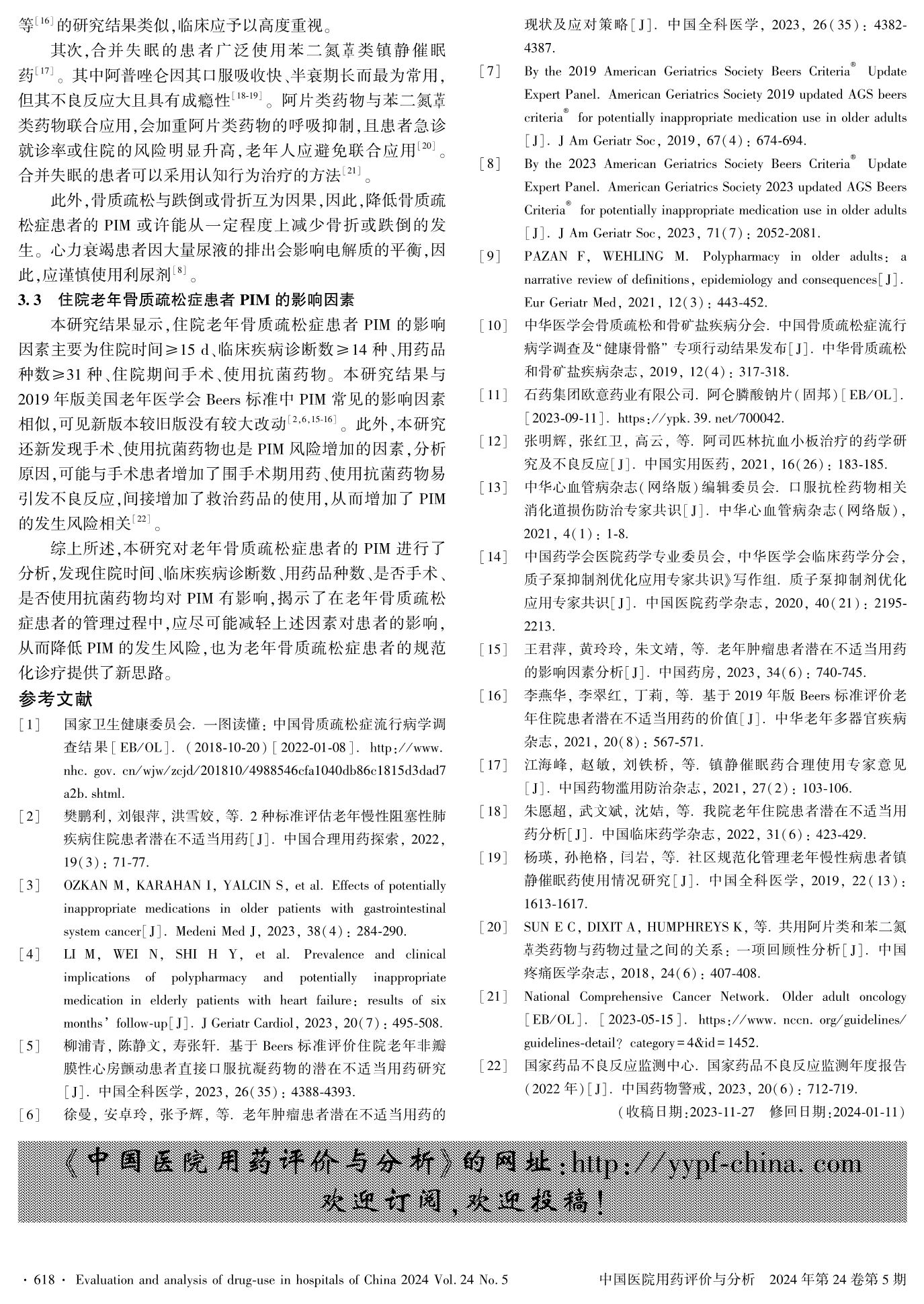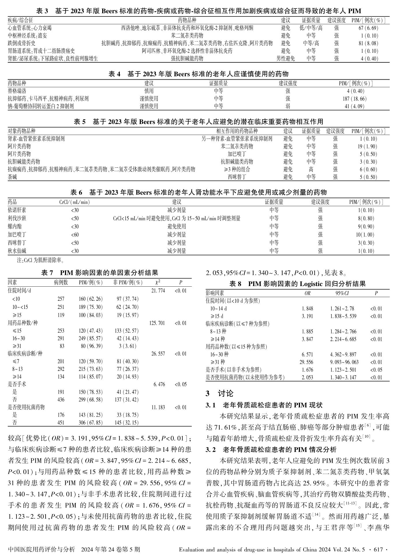 老年骨質疏松癥患者潛在不適當用藥的影響因素分析