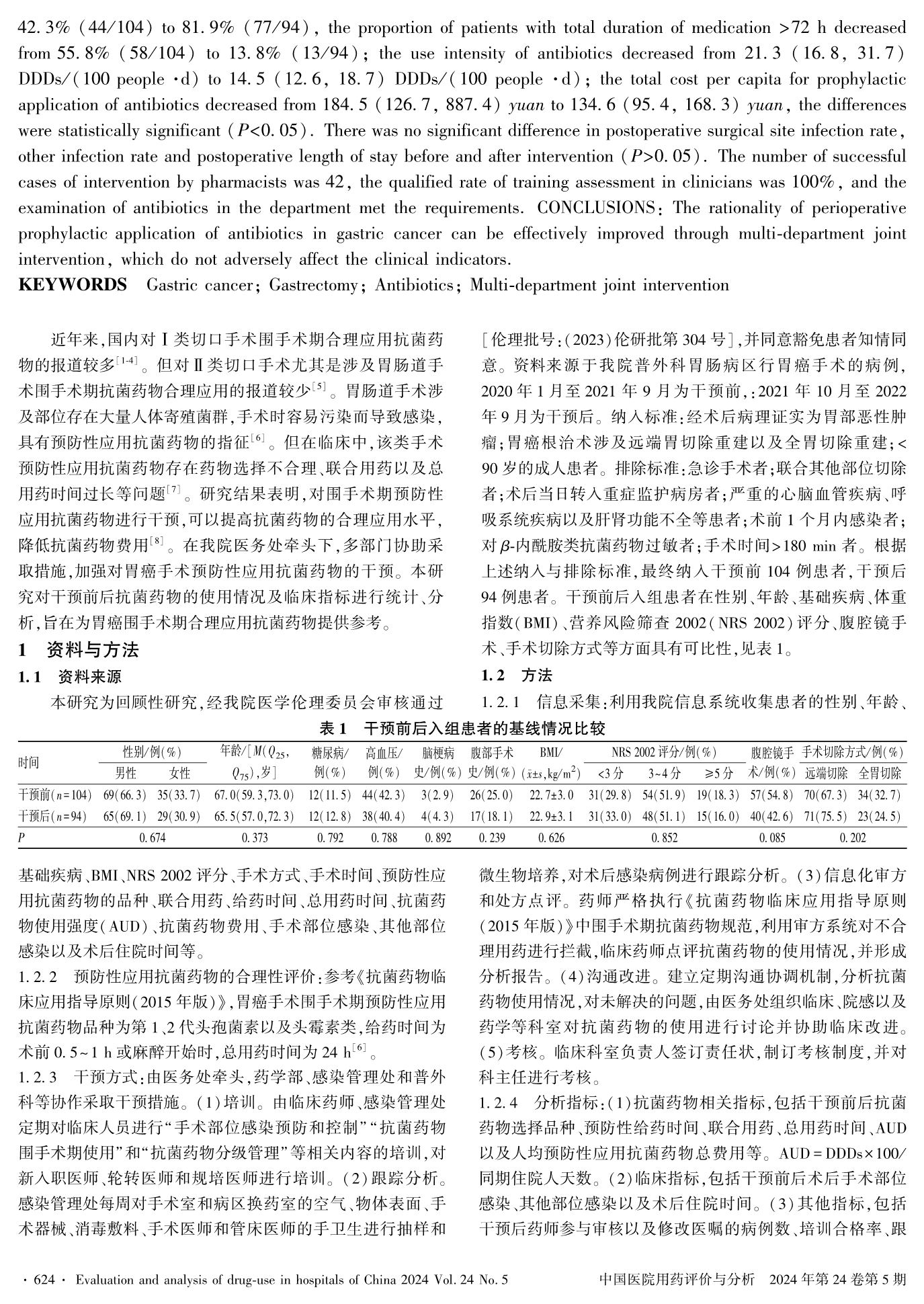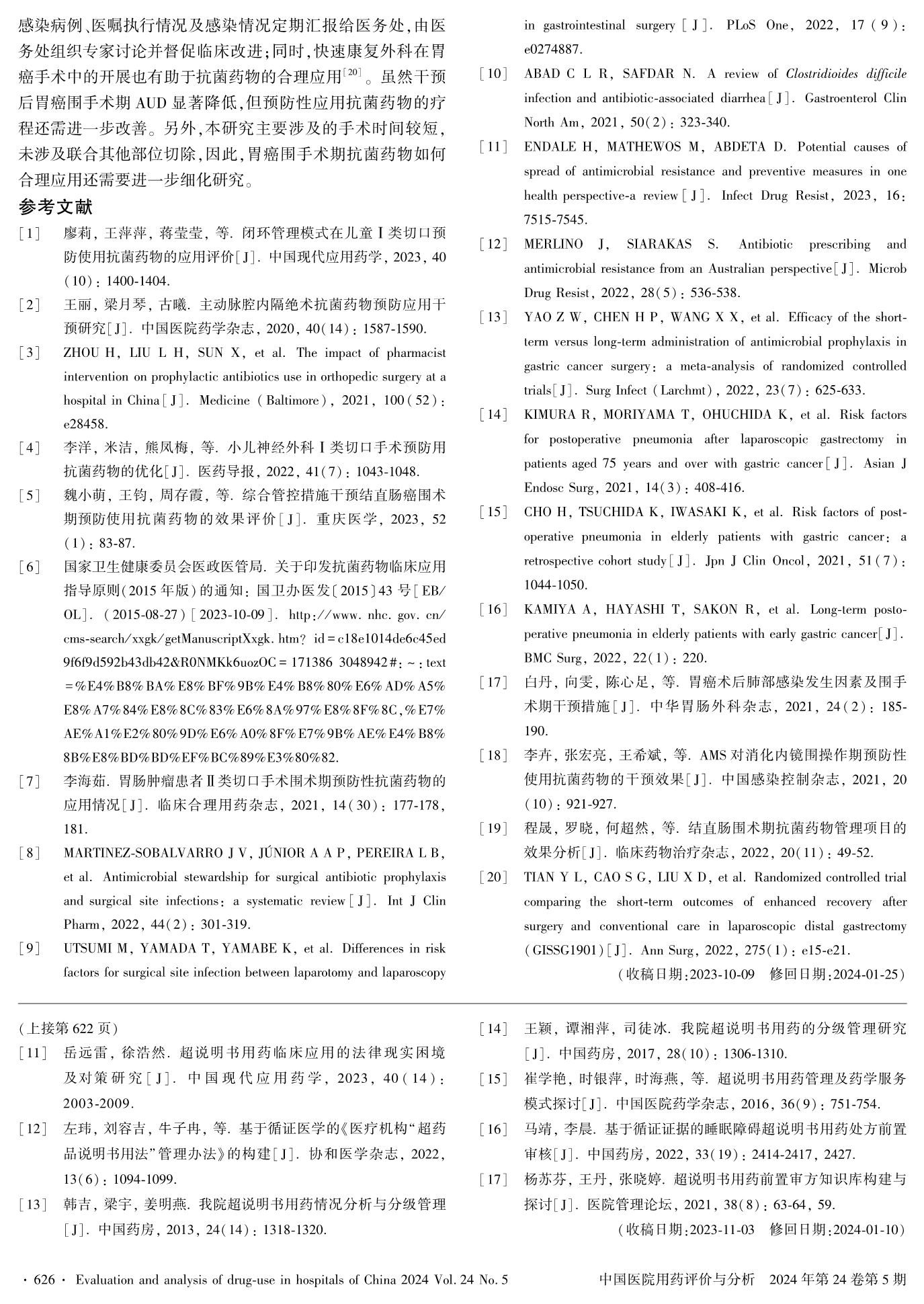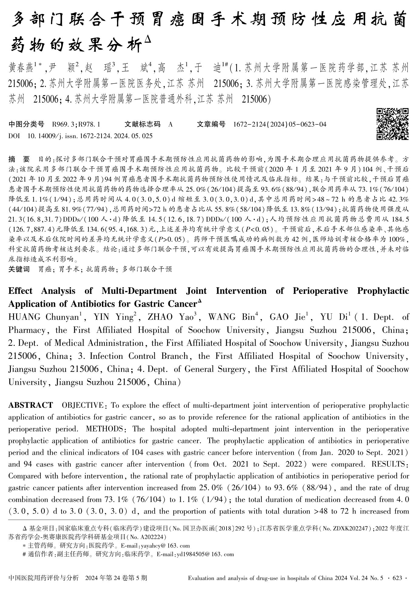 Effect Analysis of Multi-Department Joint Intervention of Perioperative Prophylactic Application of Antibiotics for Gastric Cancer……………………………………………… HUANG Chunyan, YIN Ying, ZHAO Yao, WANG Bin, GAO Jie, YU Di