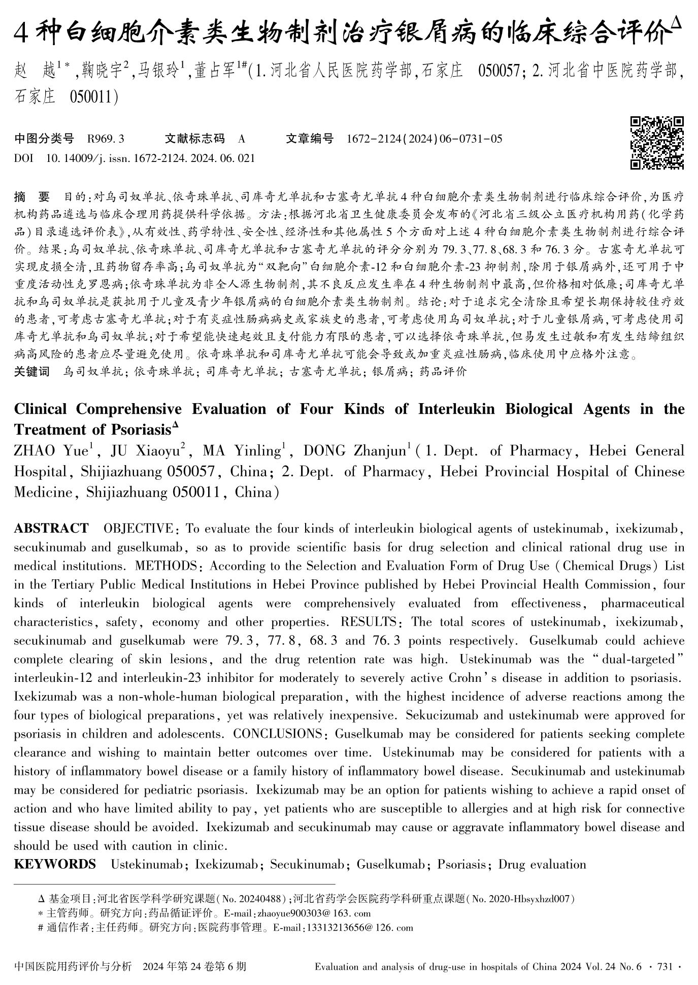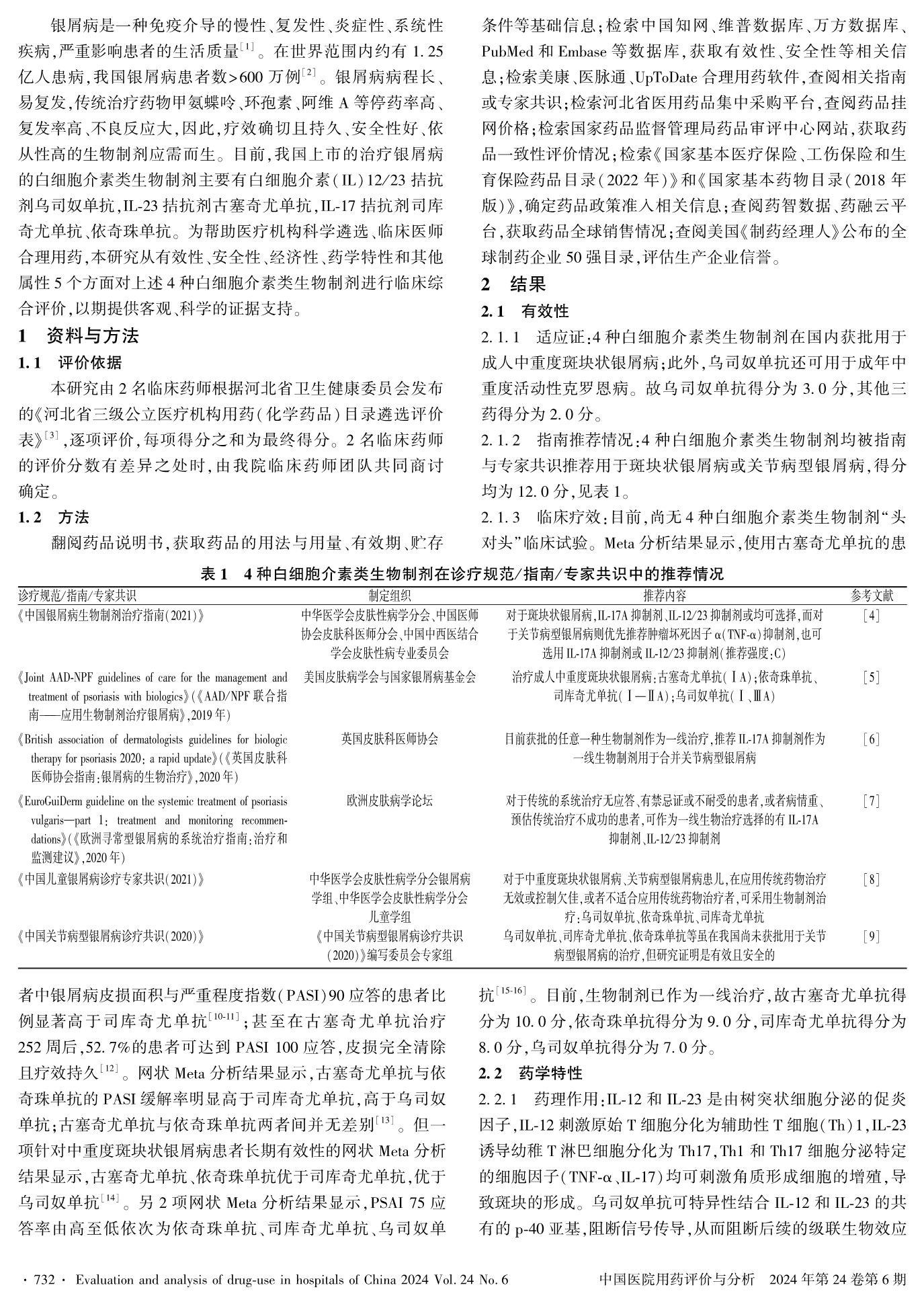 4種白細(xì)胞介素類生物制劑治療銀屑病的臨床綜合評(píng)價(jià)