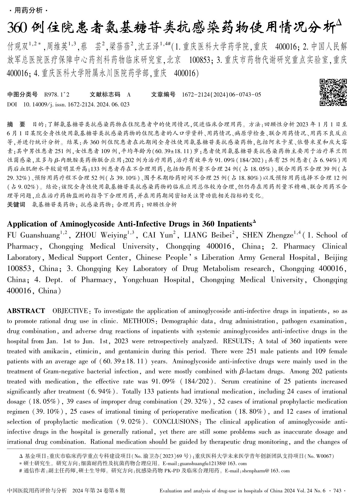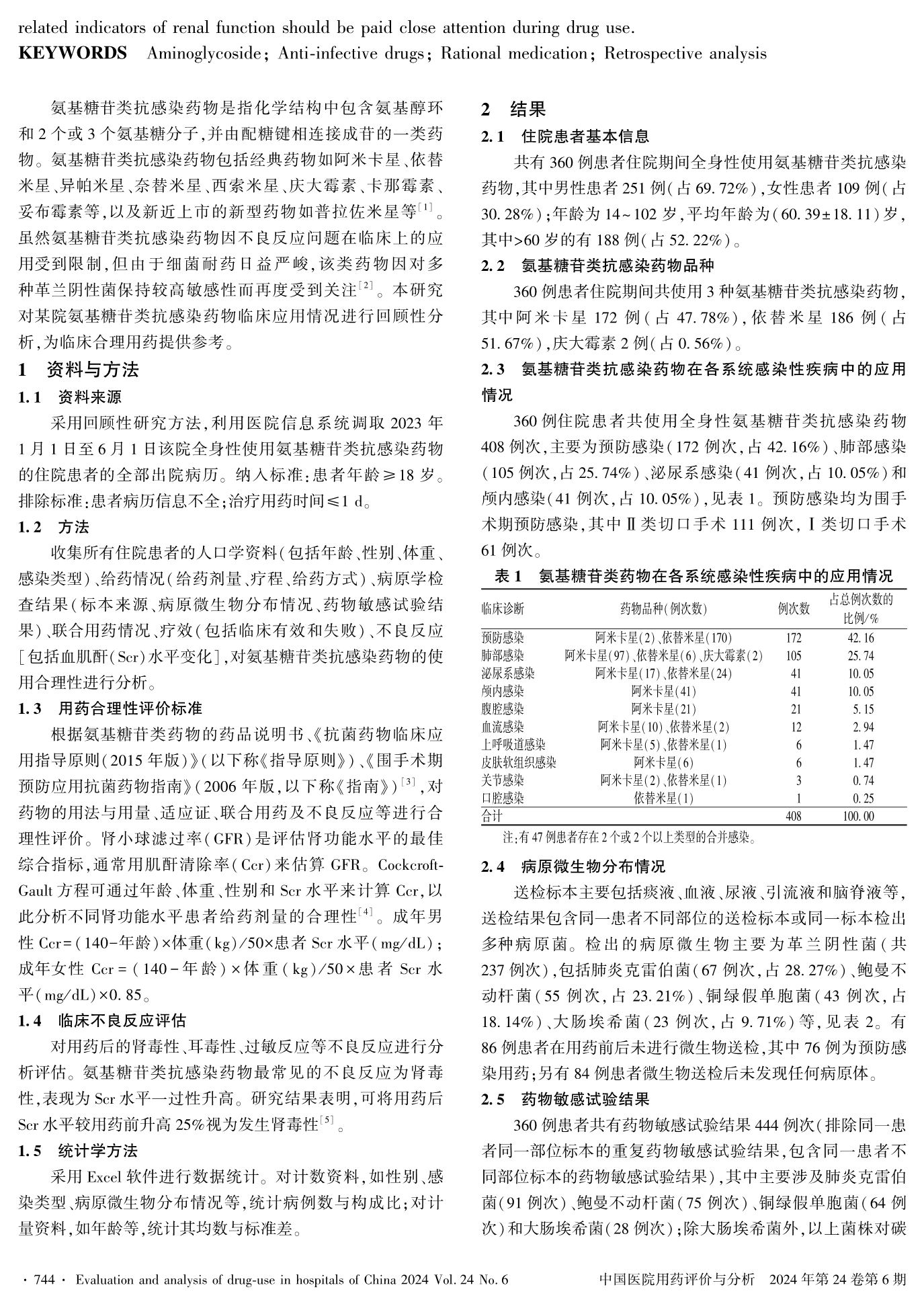 360例住院患者氨基糖苷類抗感染藥物使用情況分析