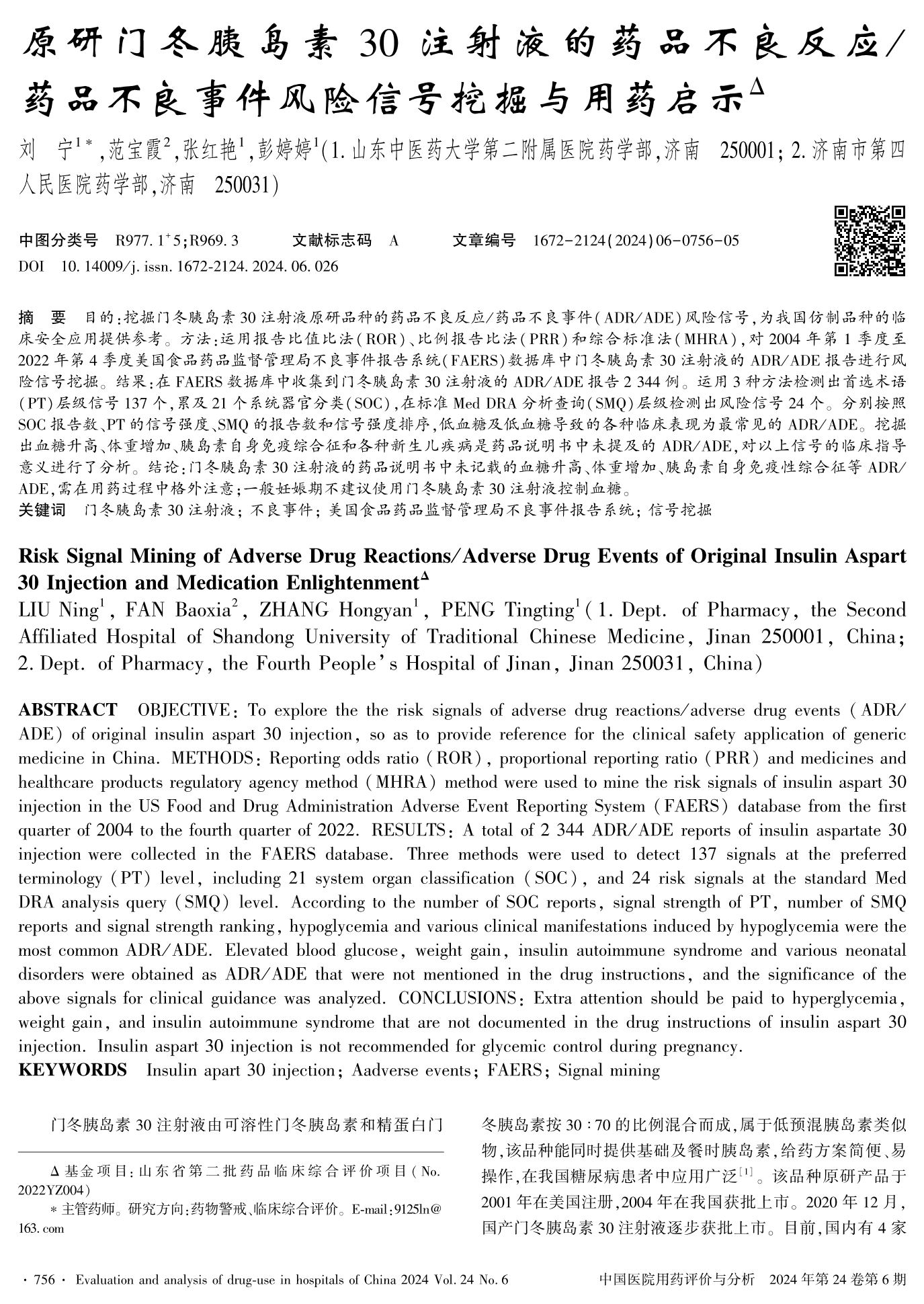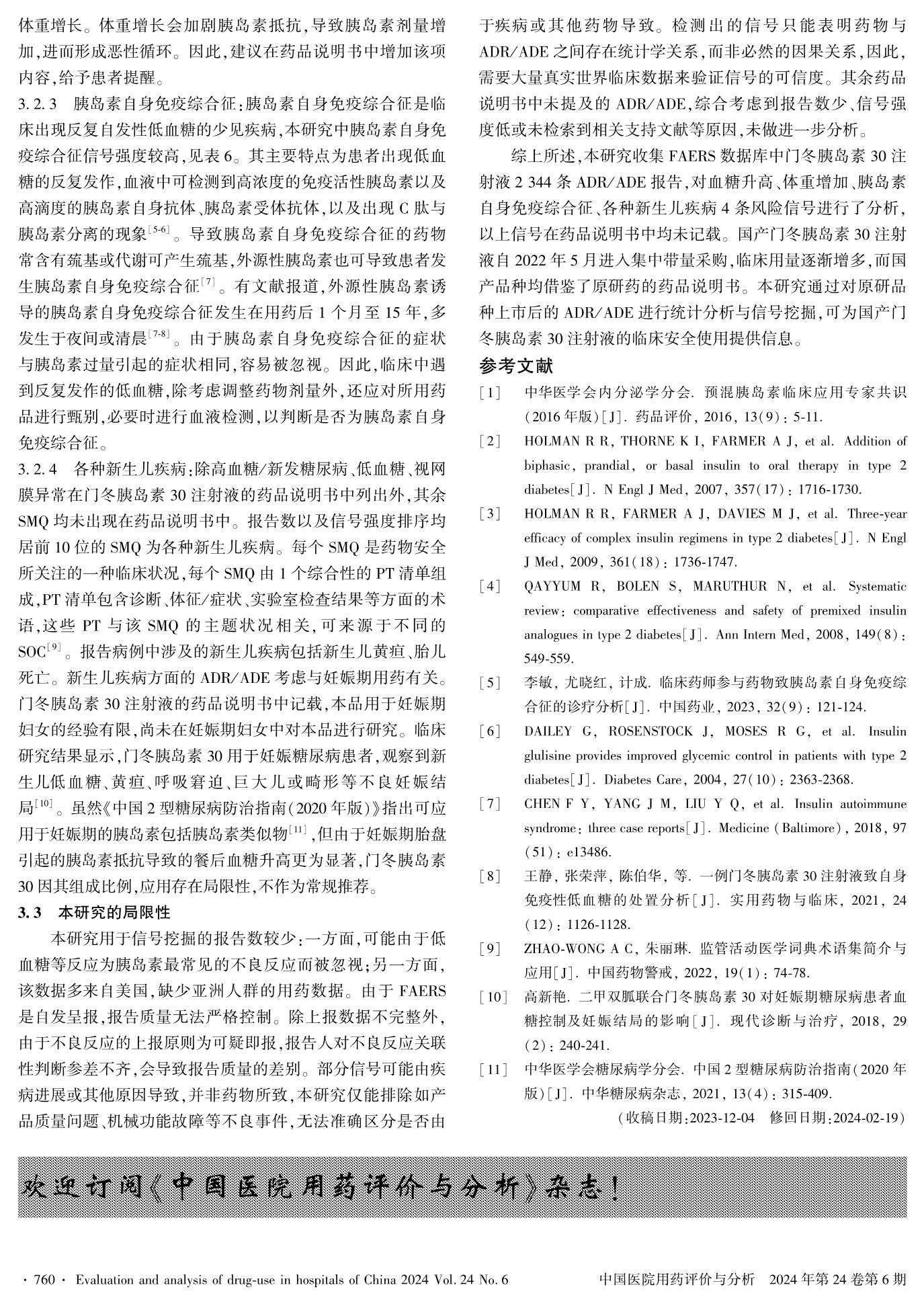 原研門(mén)冬胰島素30注射液的藥品不良反應(yīng)/藥品不良事件風(fēng)險(xiǎn)信號(hào)挖掘與用藥啟示