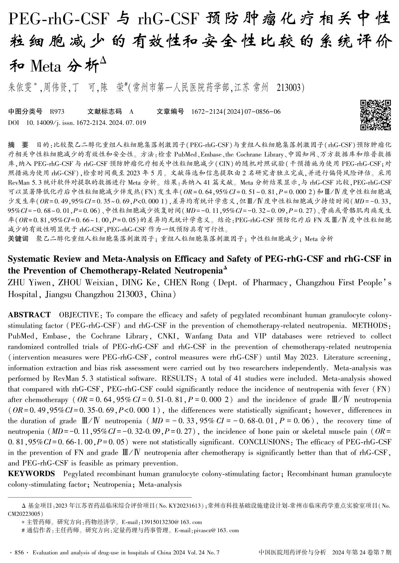 Systematic Review and Meta-Analysis on Efficacy and Safety of PEG-rhG-CSF and rhG-CSF in the Prevention of Chemotherapy Related Neutropenia