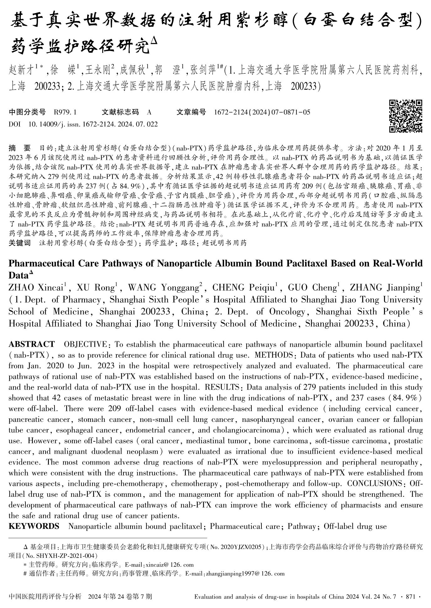 Pharmaceutical Care Pathways of Nanoparticle Albumin Bound Paclitaxel Based on Real-World Data