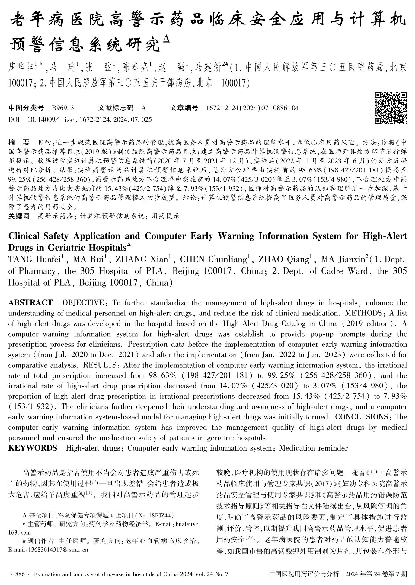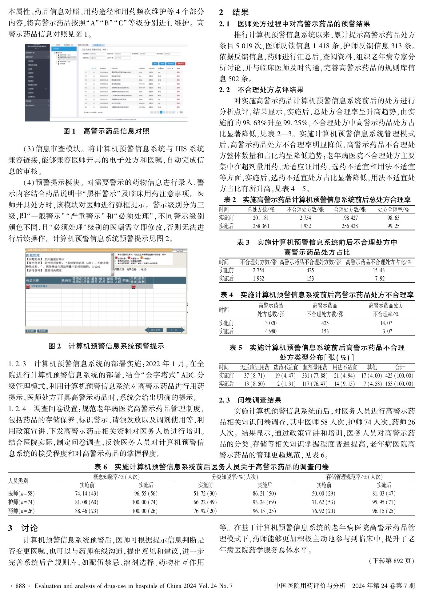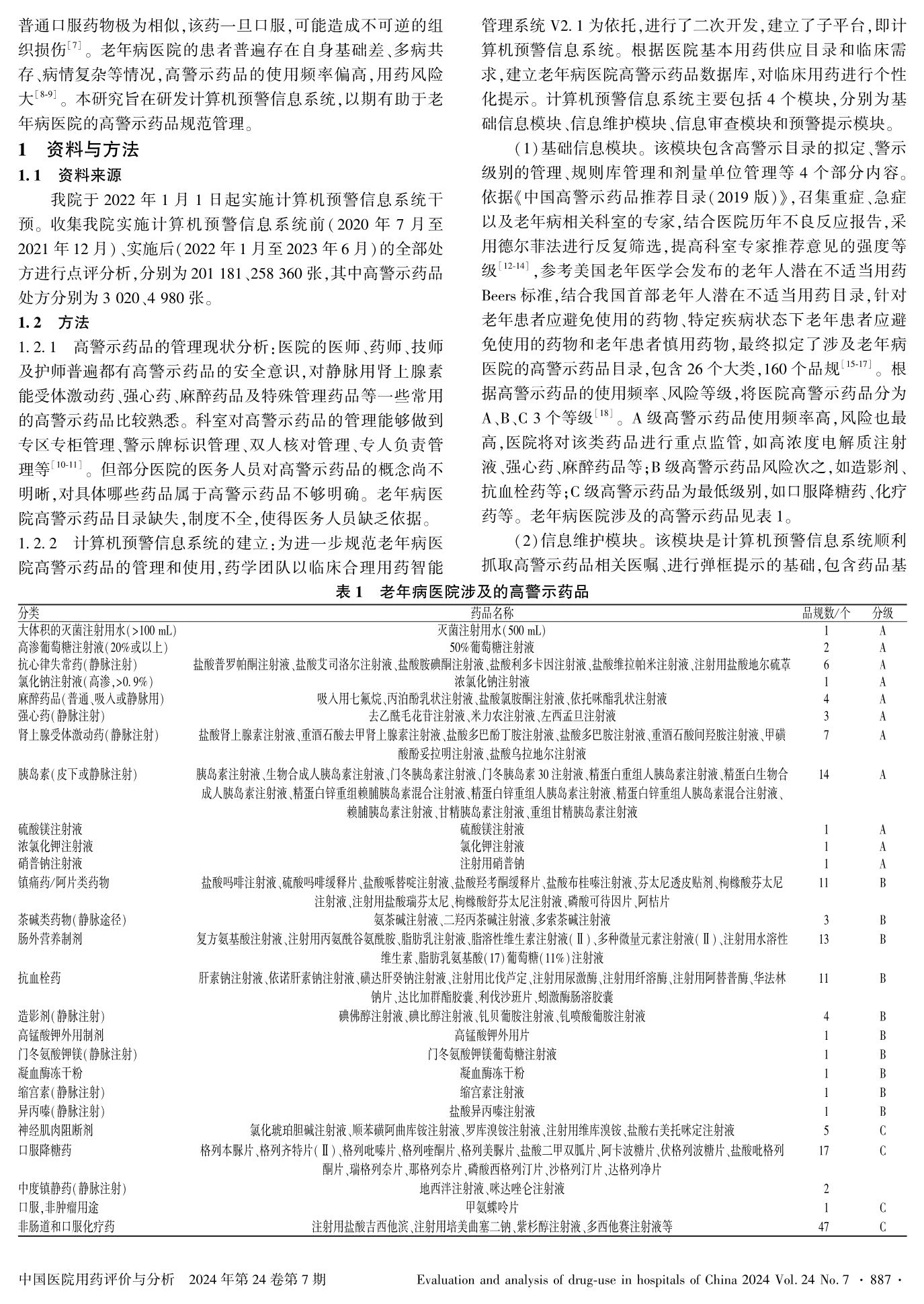 Clinical Safety Application and Computer Early Warning Information System for High-Alert Drugs in Geriatric Hospitals