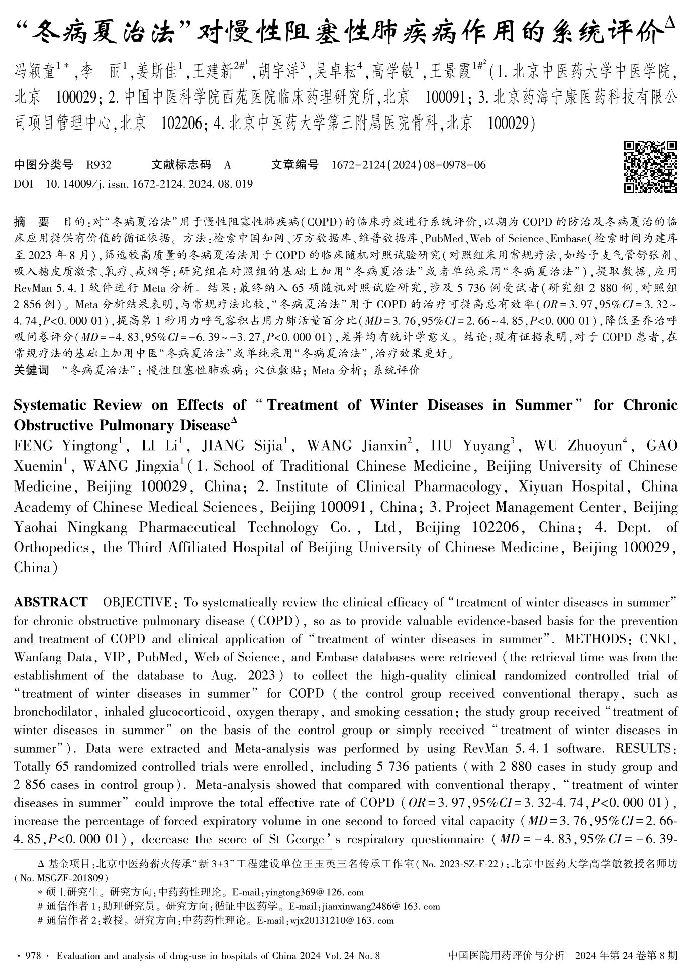 “冬病夏治法”對慢性阻塞性肺疾病作用的系統(tǒng)評價