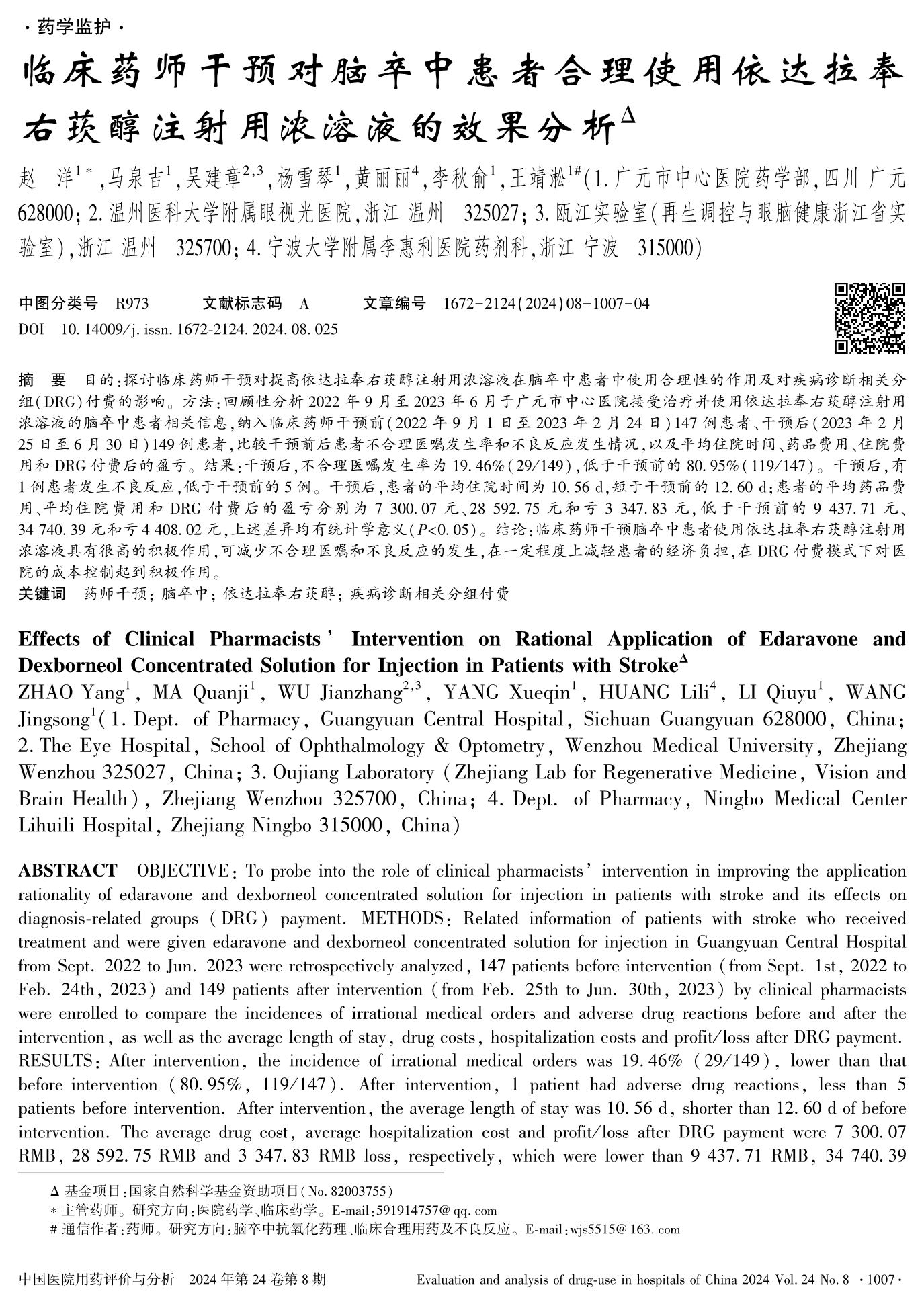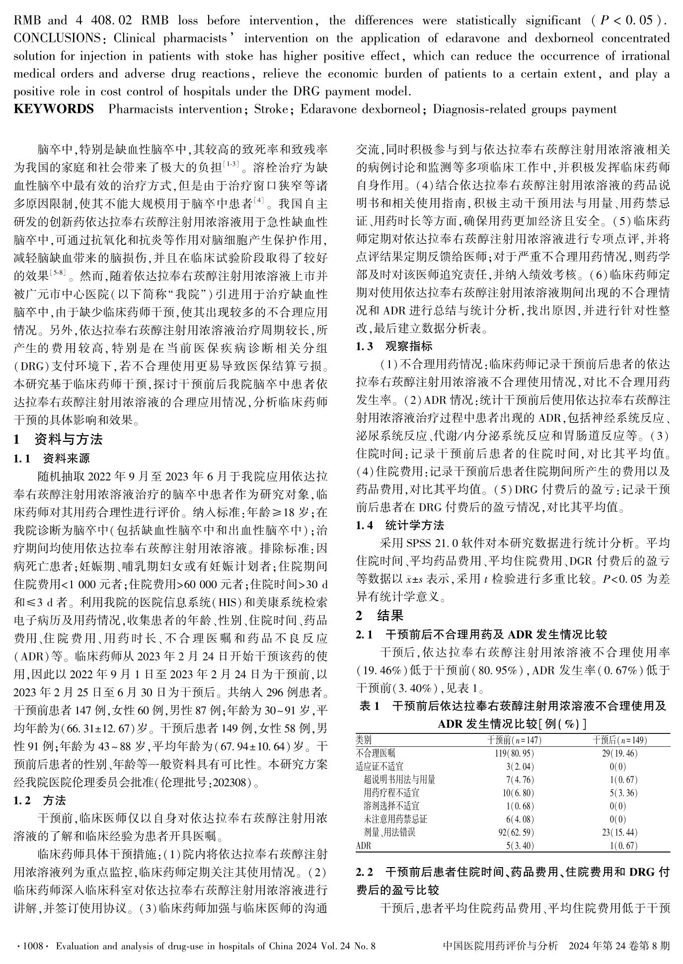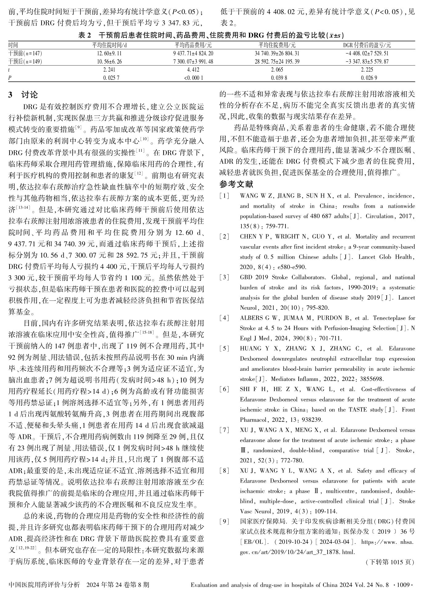 臨床藥師干預(yù)對腦卒中患者合理使用依達拉奉右莰醇注射用濃溶液的效果分析