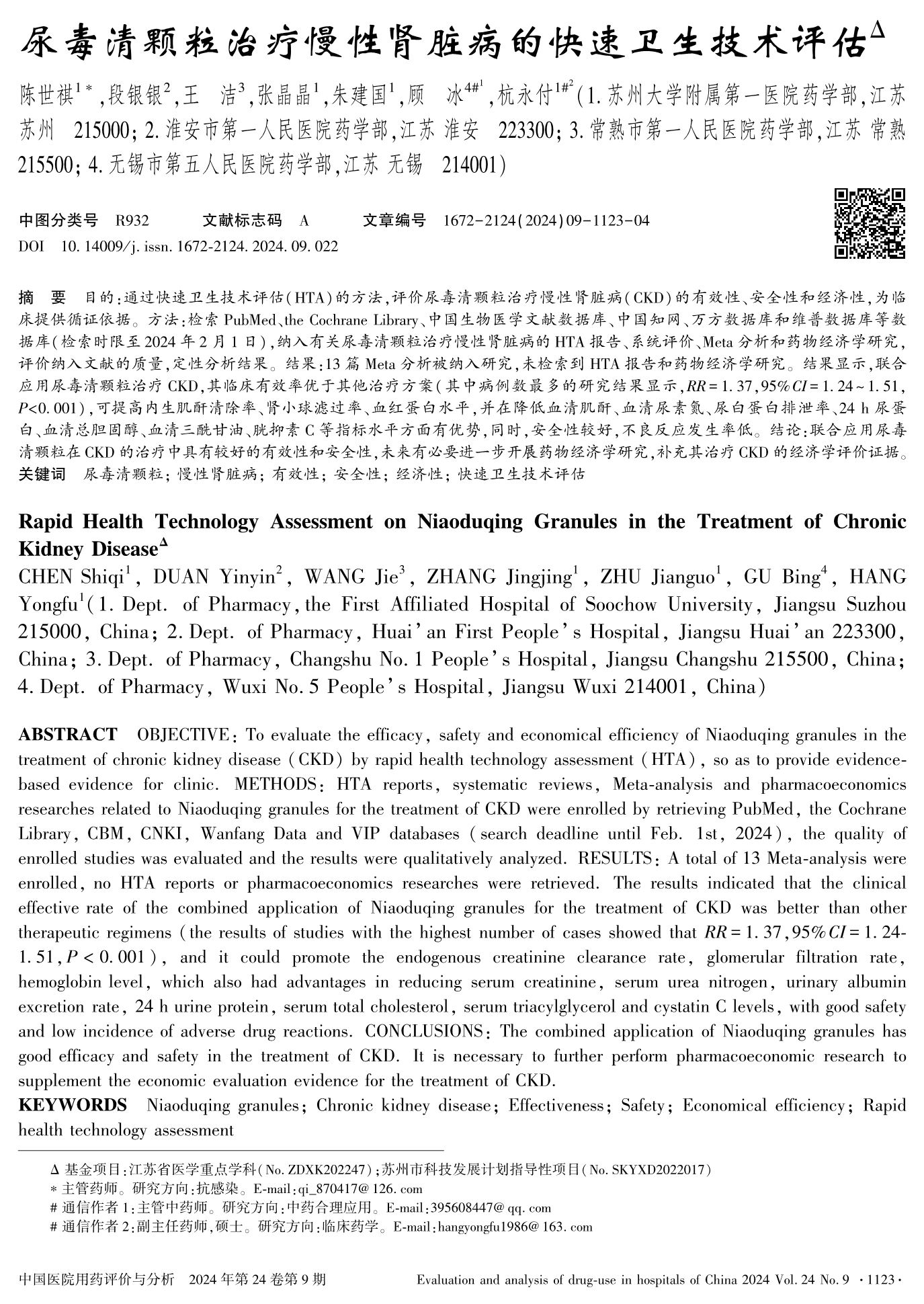 尿毒清顆粒治療慢性腎臟病的快速衛(wèi)生技術(shù)評估