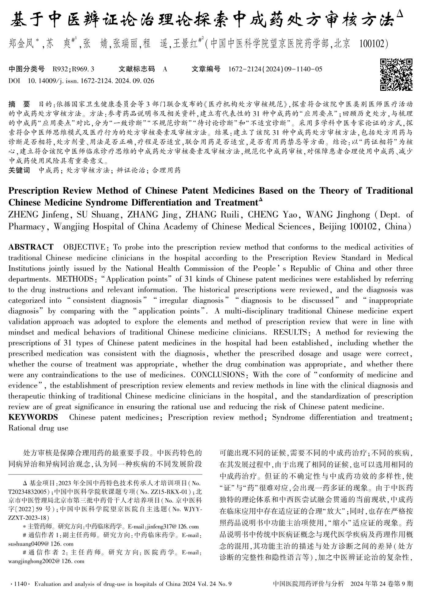 基于中醫(yī)辨證論治理論探索中成藥處方審核方法