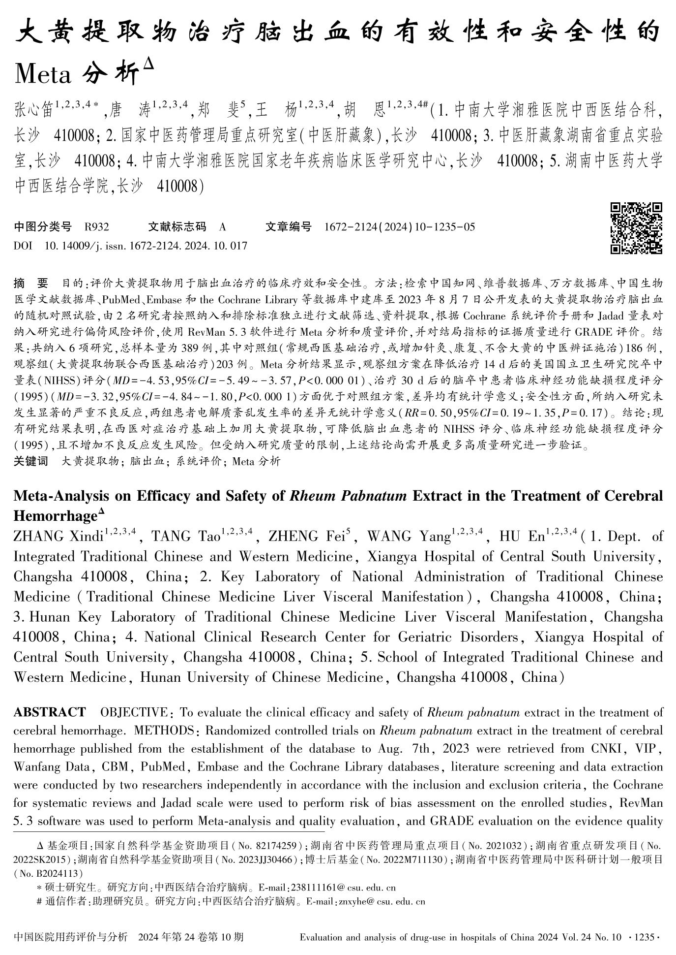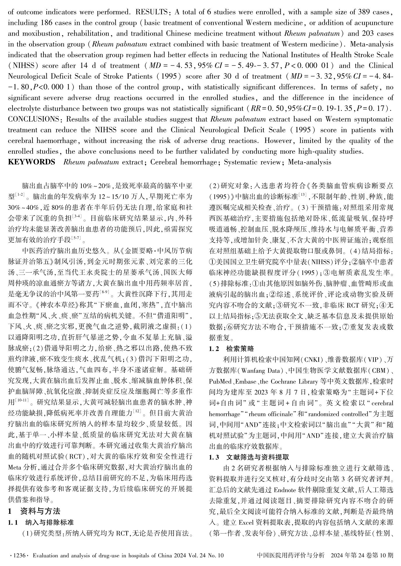 大黃提取物治療腦出血的有效性和安全性的Meta分析