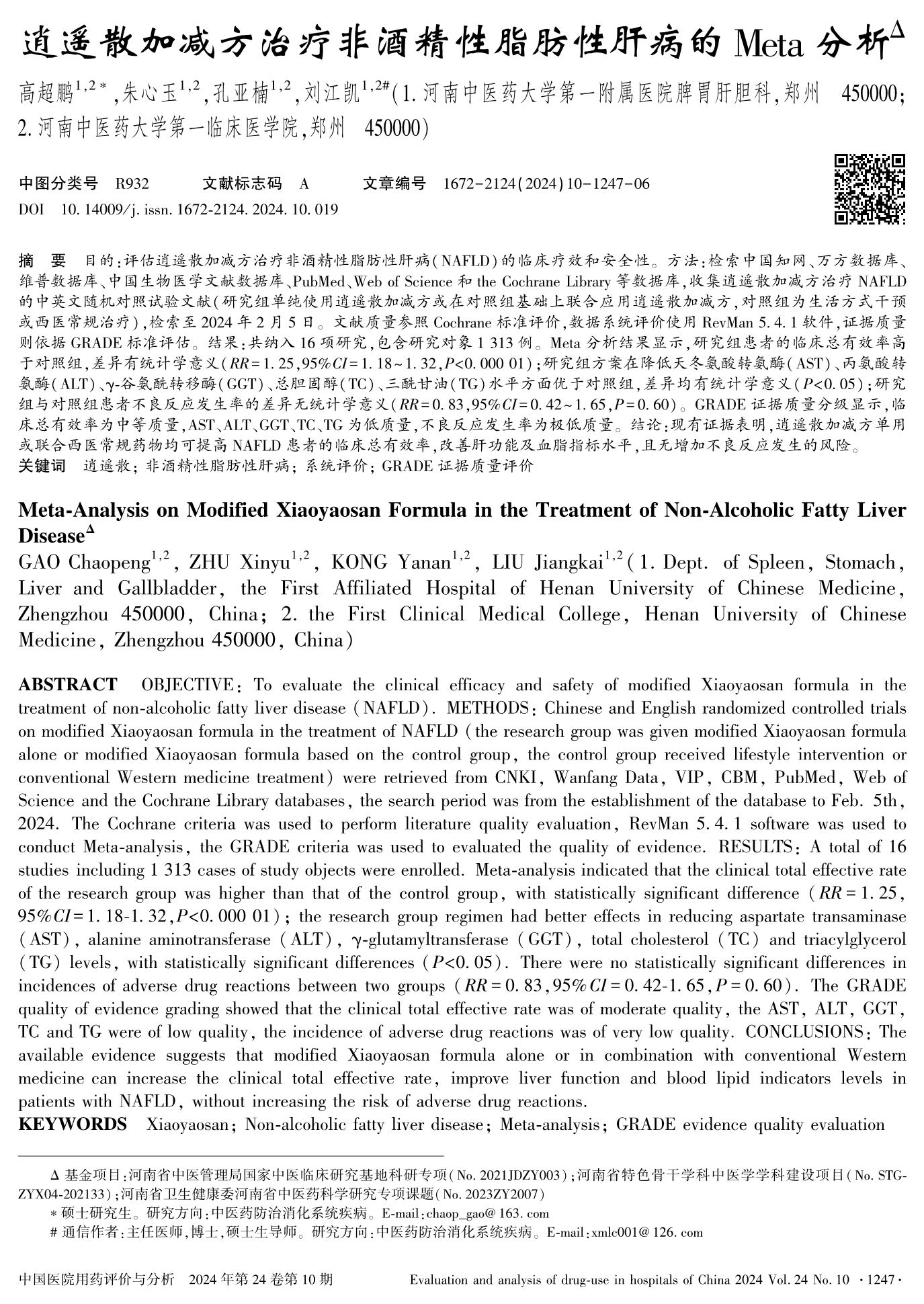 Meta-Analysis on Modified Xiaoyaosan Formula in the Treatment of Non-Alcoholic Fatty Liver Disease