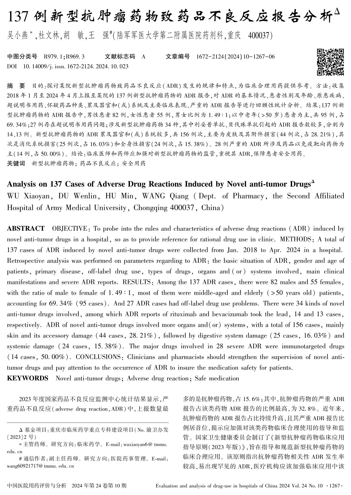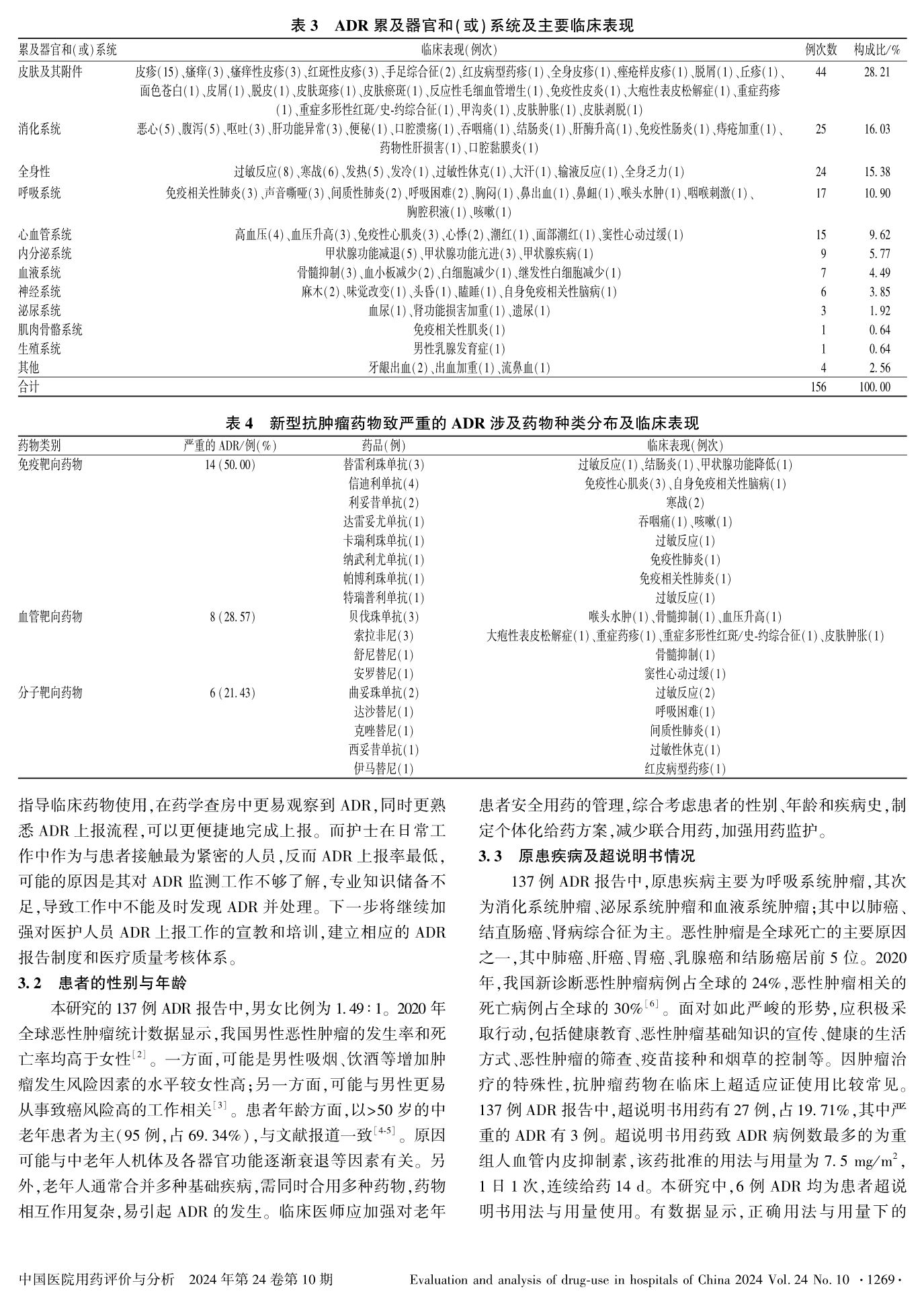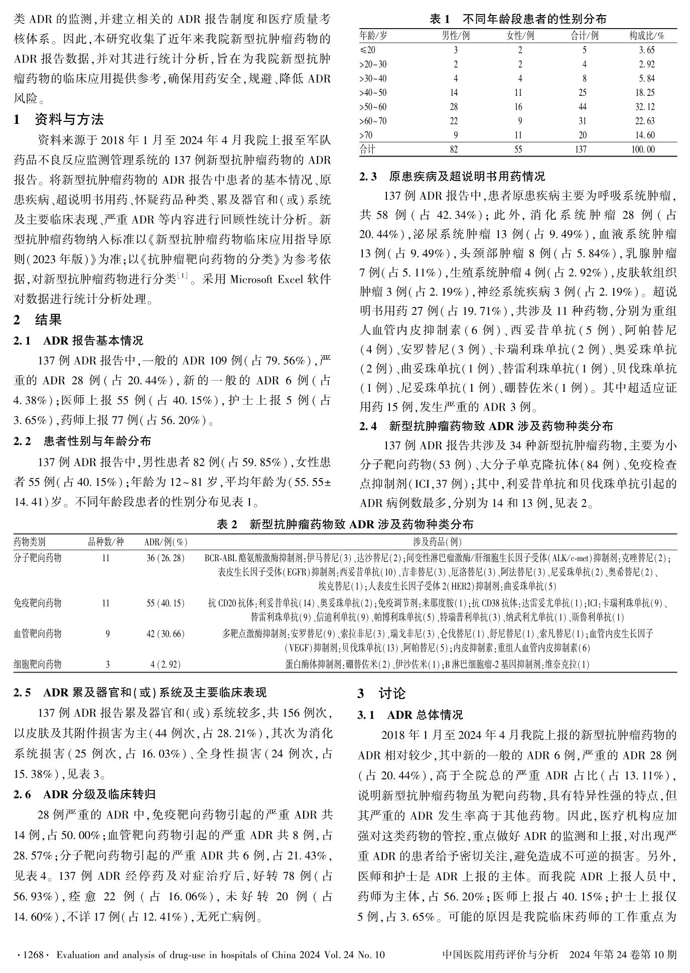 137例新型抗腫瘤藥物致藥品不良反應(yīng)報告分析