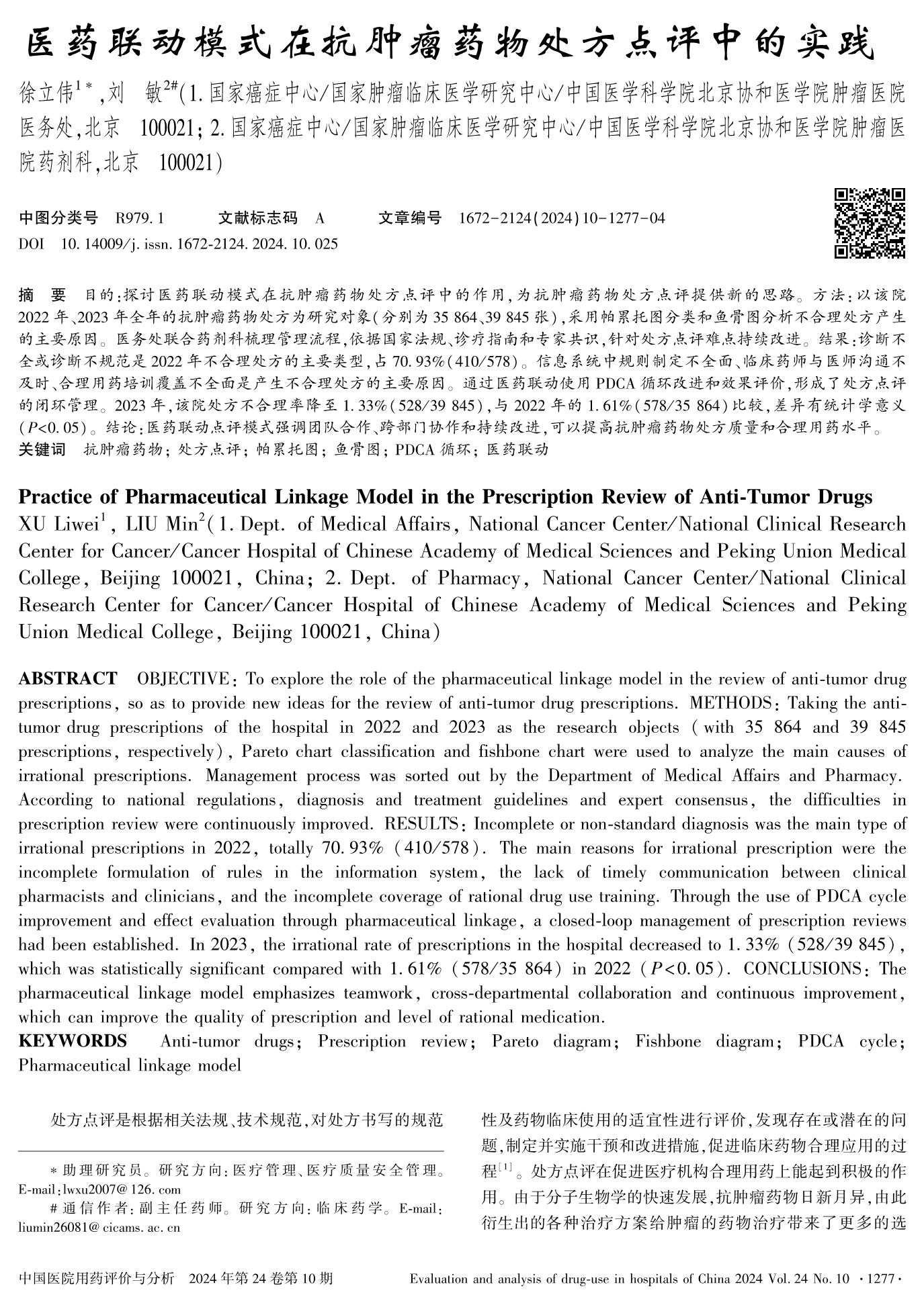 醫(yī)藥聯(lián)動(dòng)模式在抗腫瘤藥物處方點(diǎn)評(píng)中的實(shí)踐
