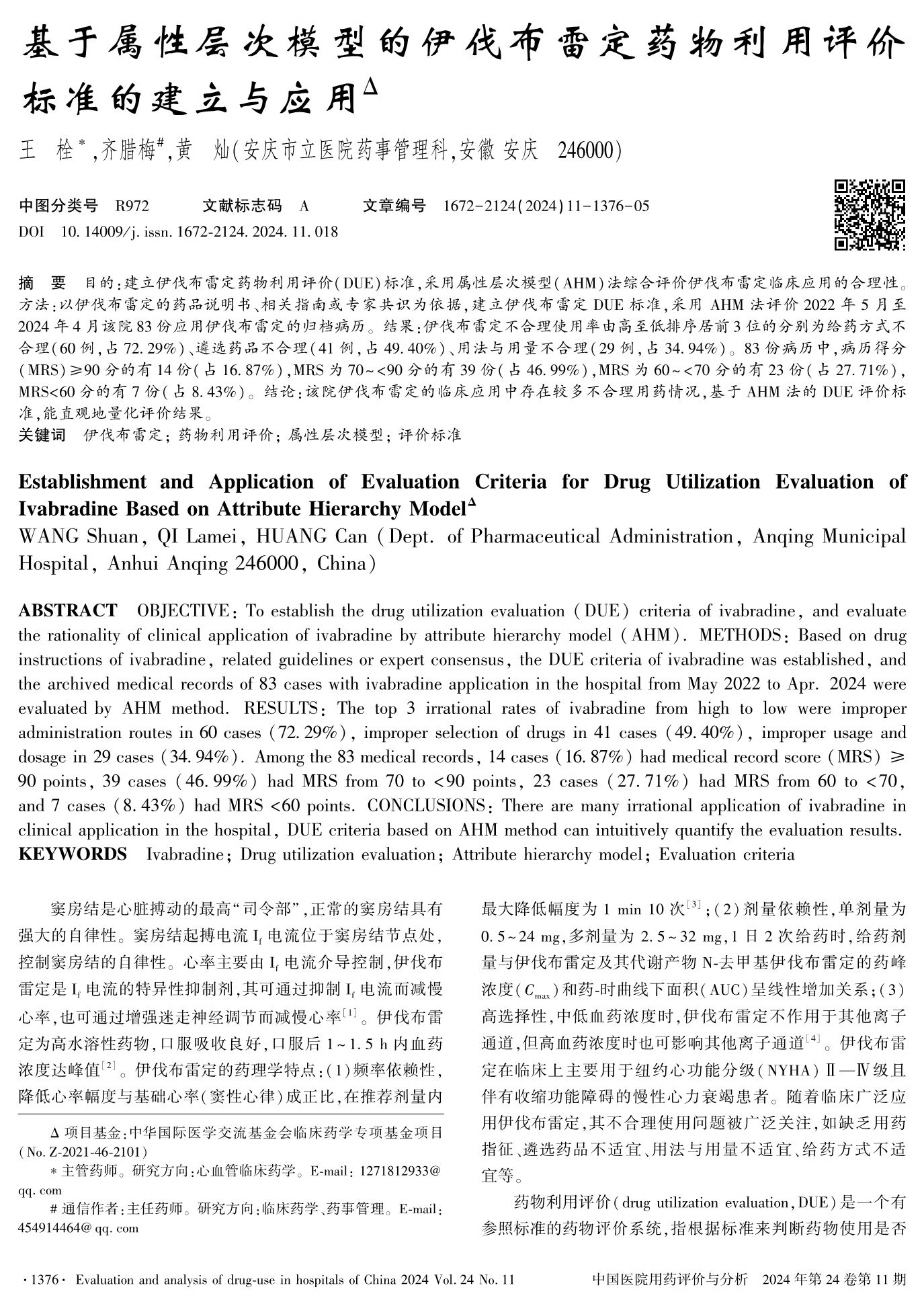 基于屬性層次模型的伊伐布雷定藥物利用評價標準的建立與應用