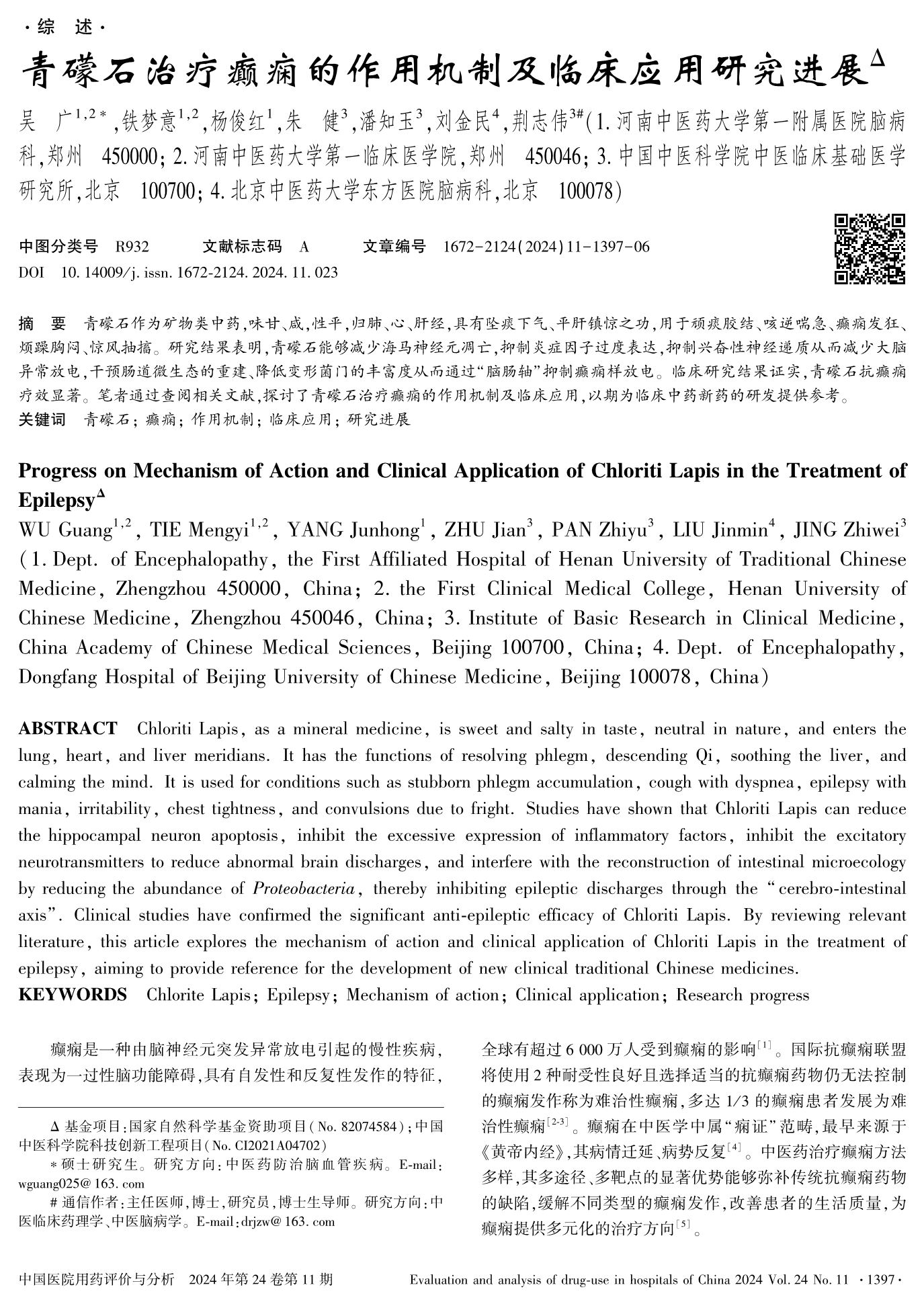 青礞石治療癲癇的作用機(jī)制及臨床應(yīng)用研究進(jìn)展