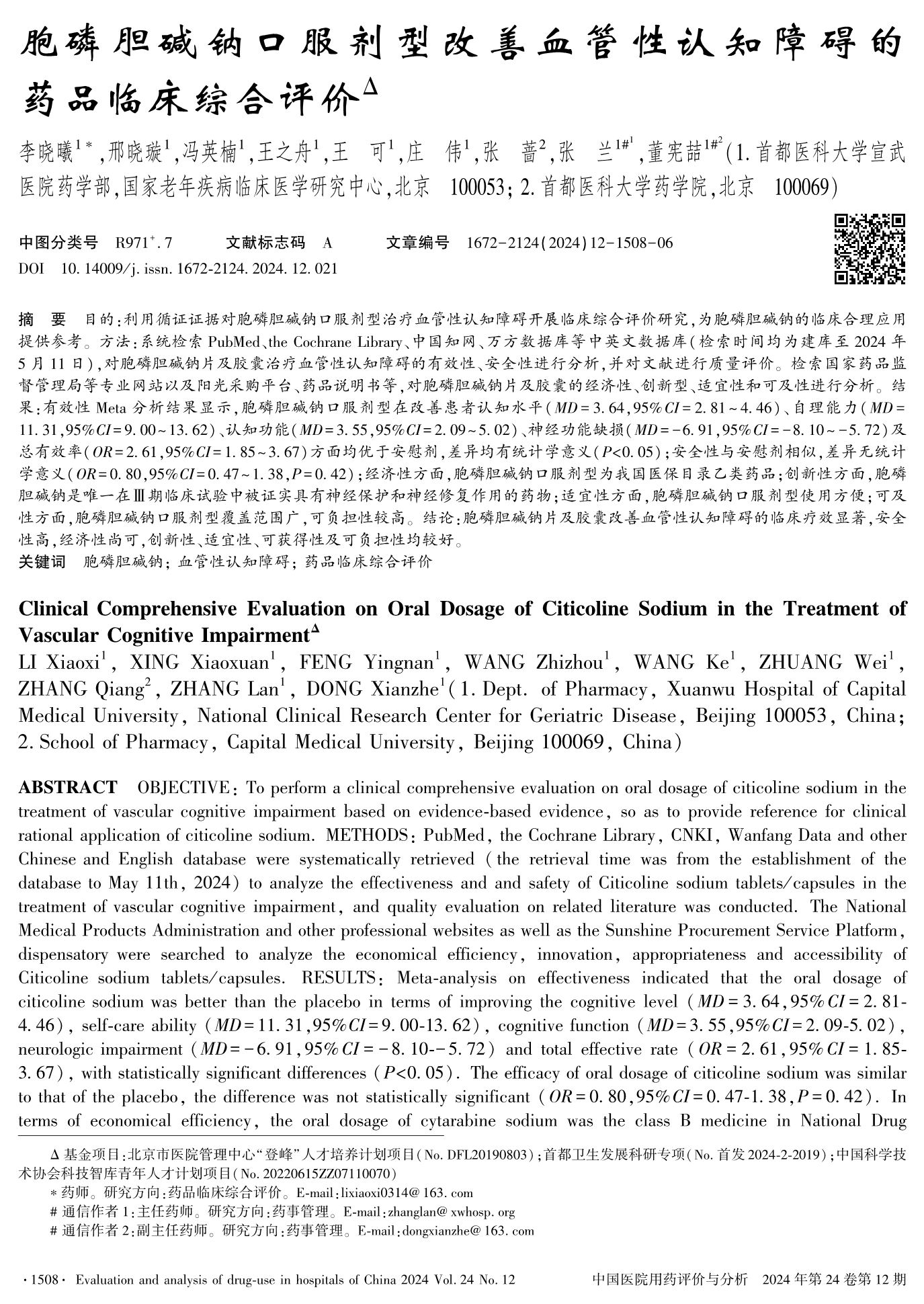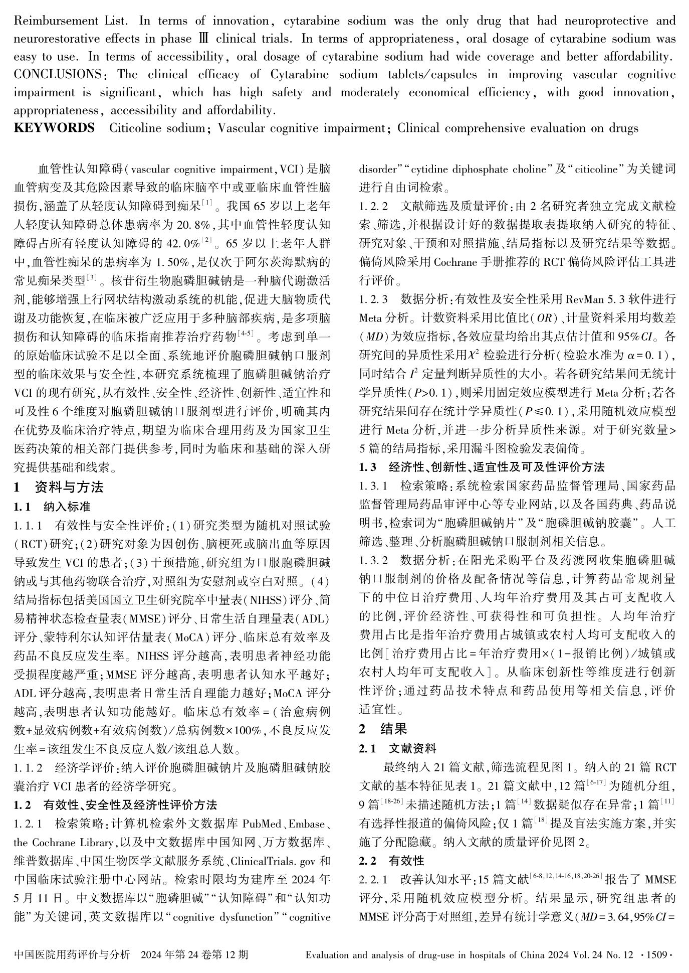 胞磷膽堿鈉口服劑型改善血管性認(rèn)知障礙的藥品臨床綜合評(píng)價(jià)
