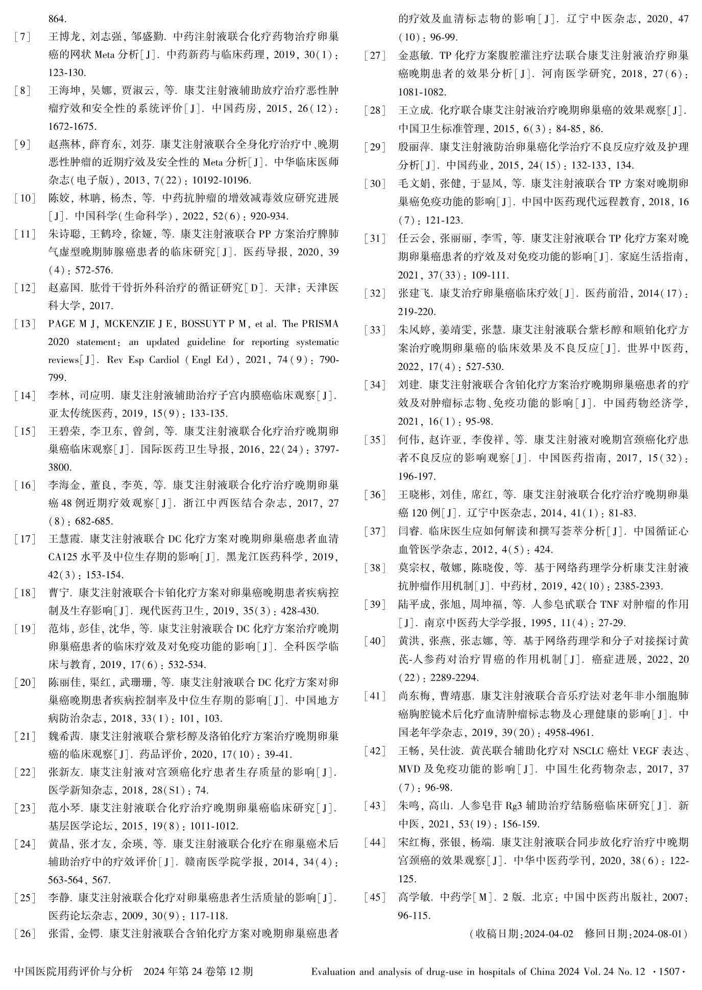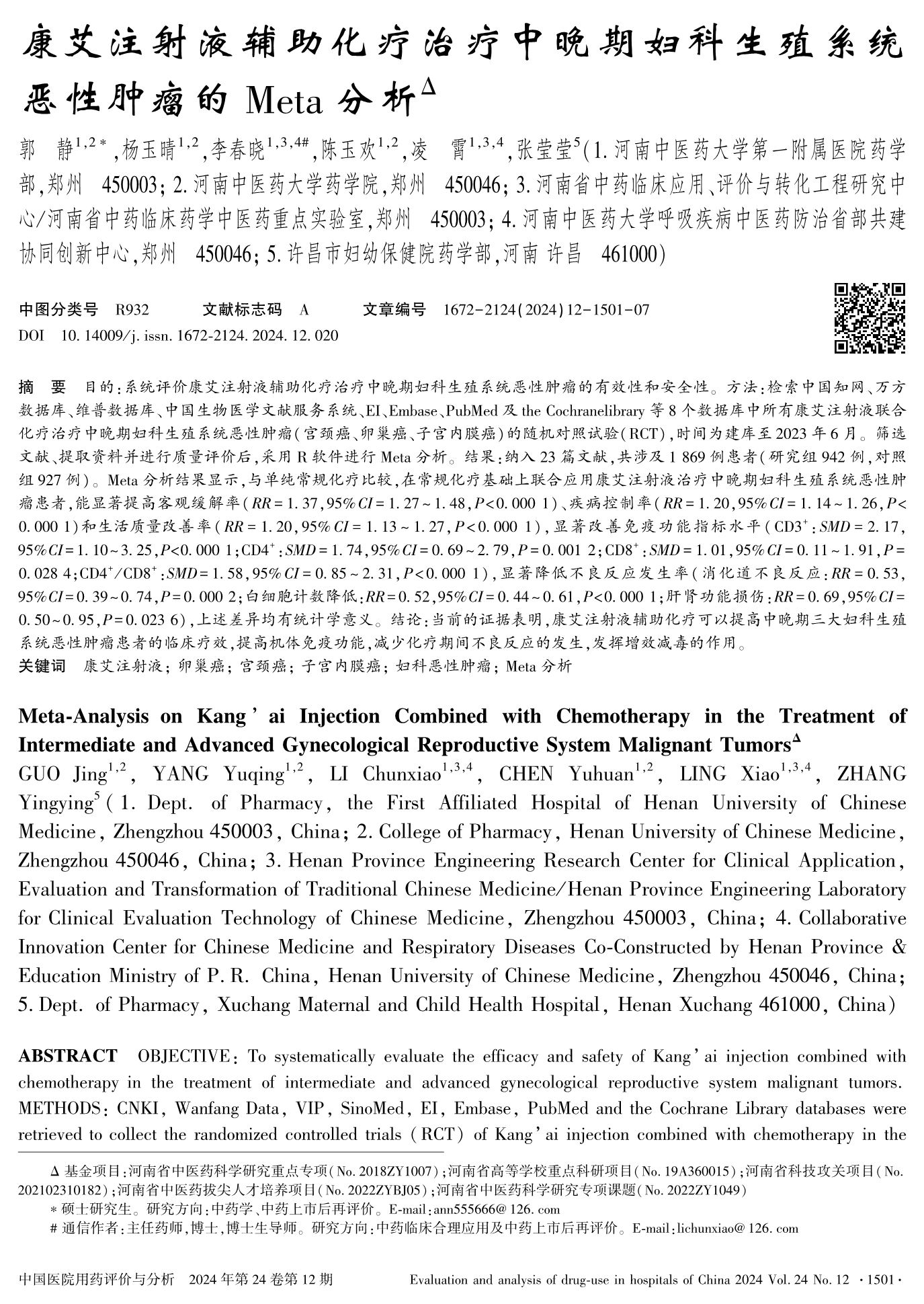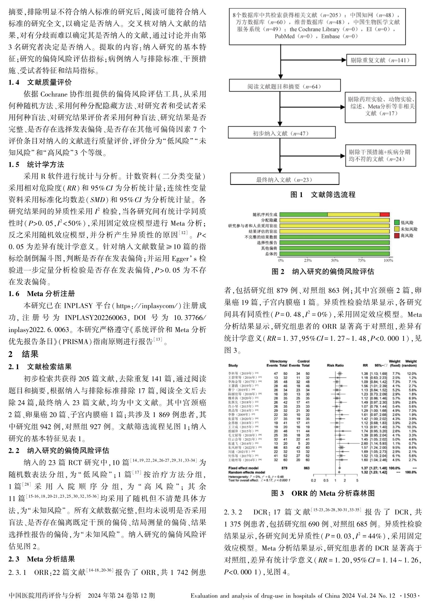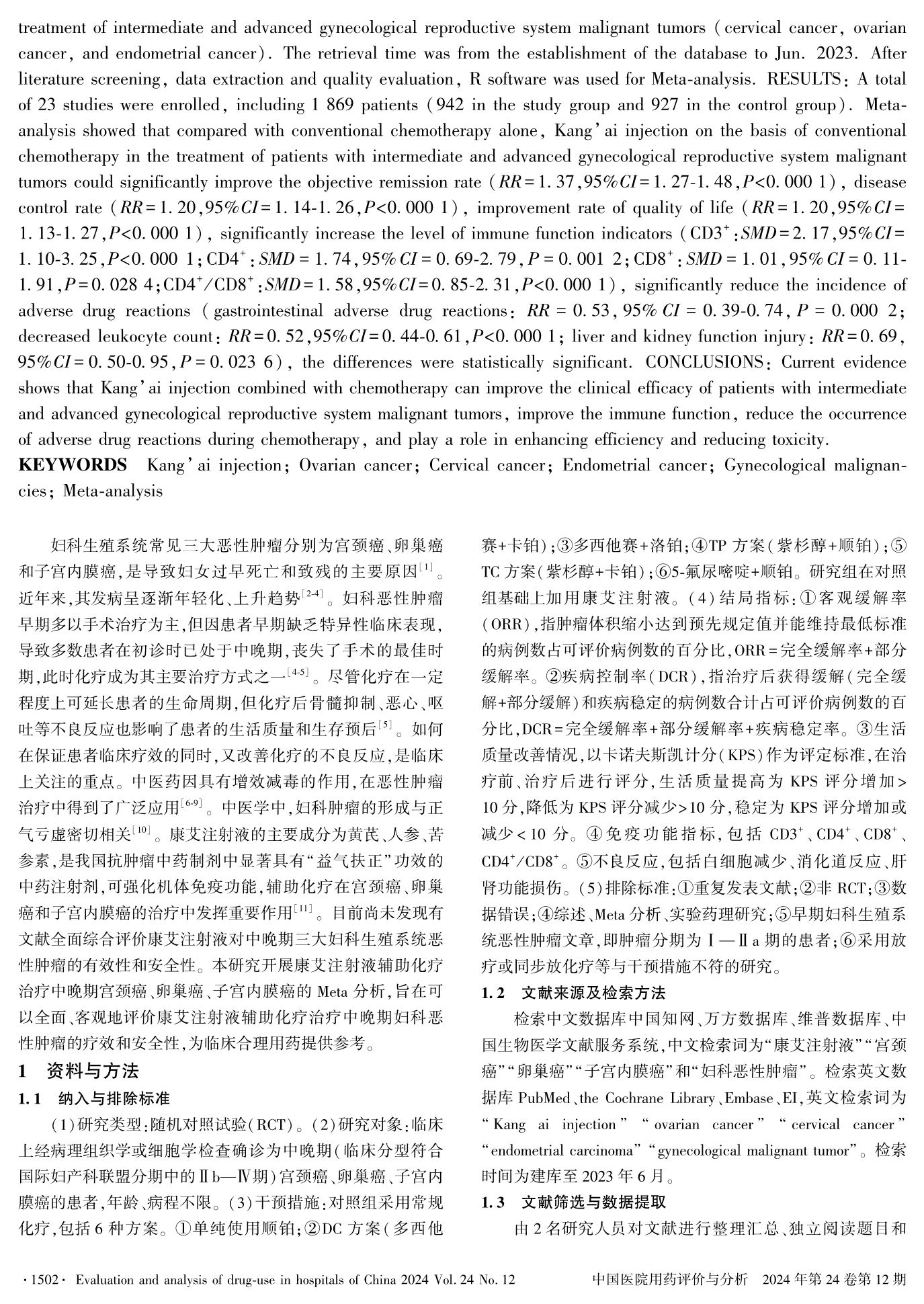 康艾注射液輔助化療治療中晚期婦科生殖系統(tǒng)惡性腫瘤的Meta分析