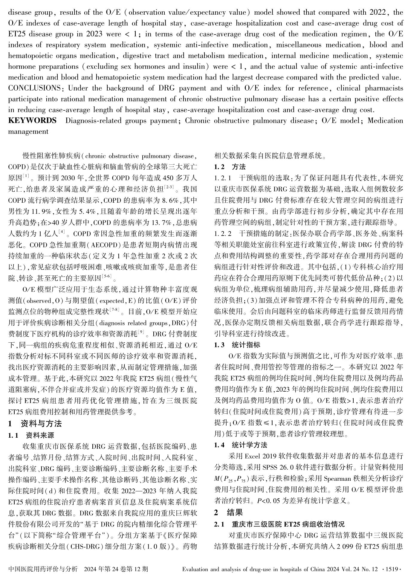 DRG付費制度下基于O/E模型優(yōu)化ET25病組用藥管理的實踐與探索