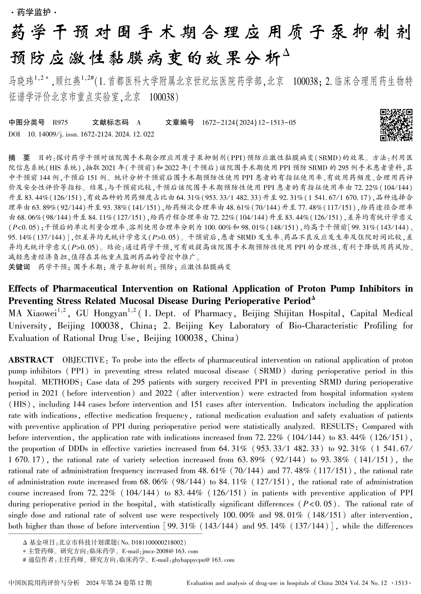 藥學(xué)干預(yù)對圍手術(shù)期合理應(yīng)用質(zhì)子泵抑制劑預(yù)防應(yīng)激性黏膜病變的效果分析