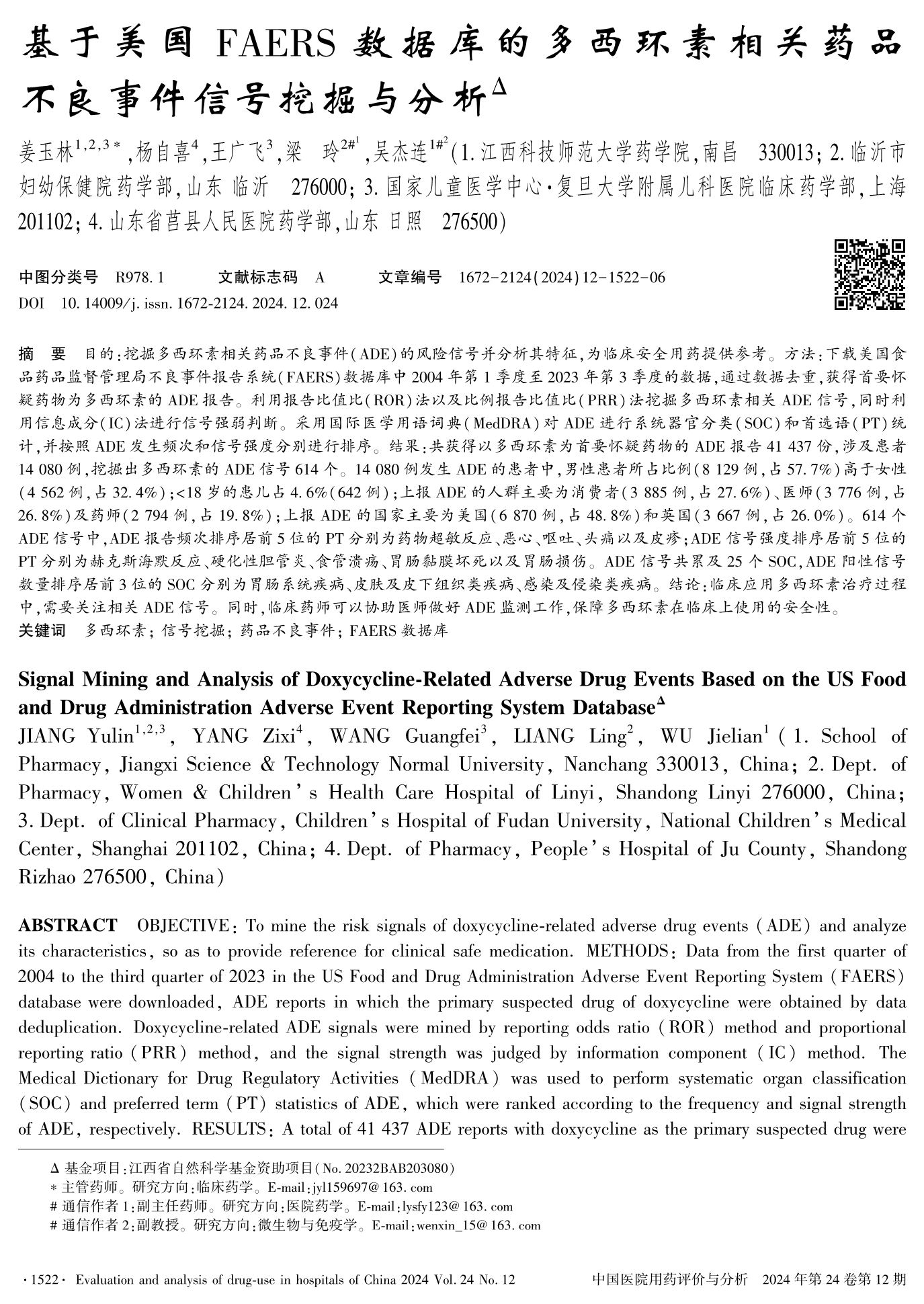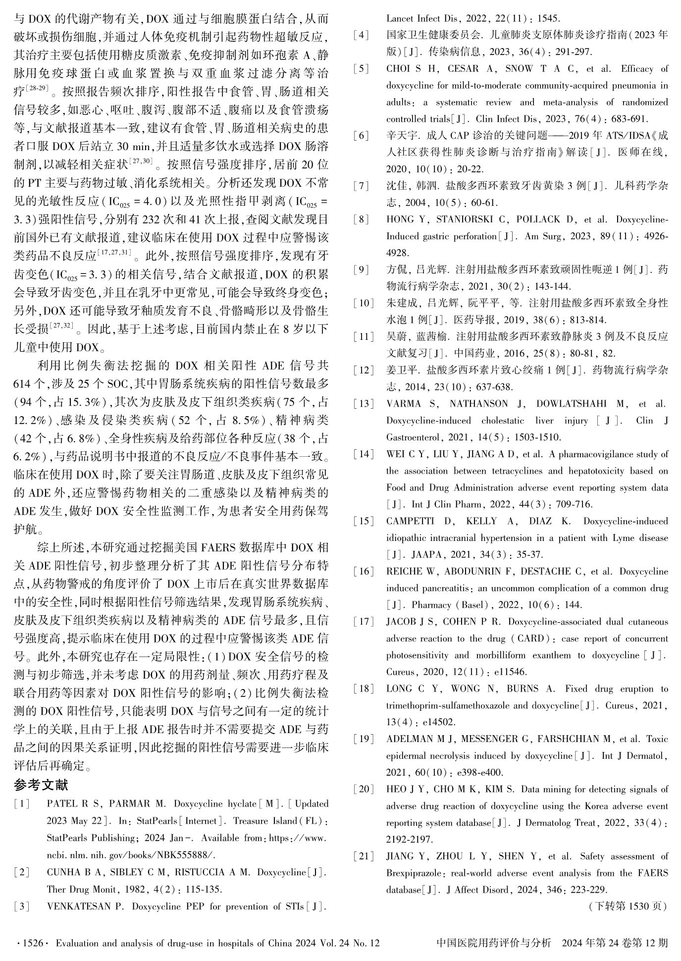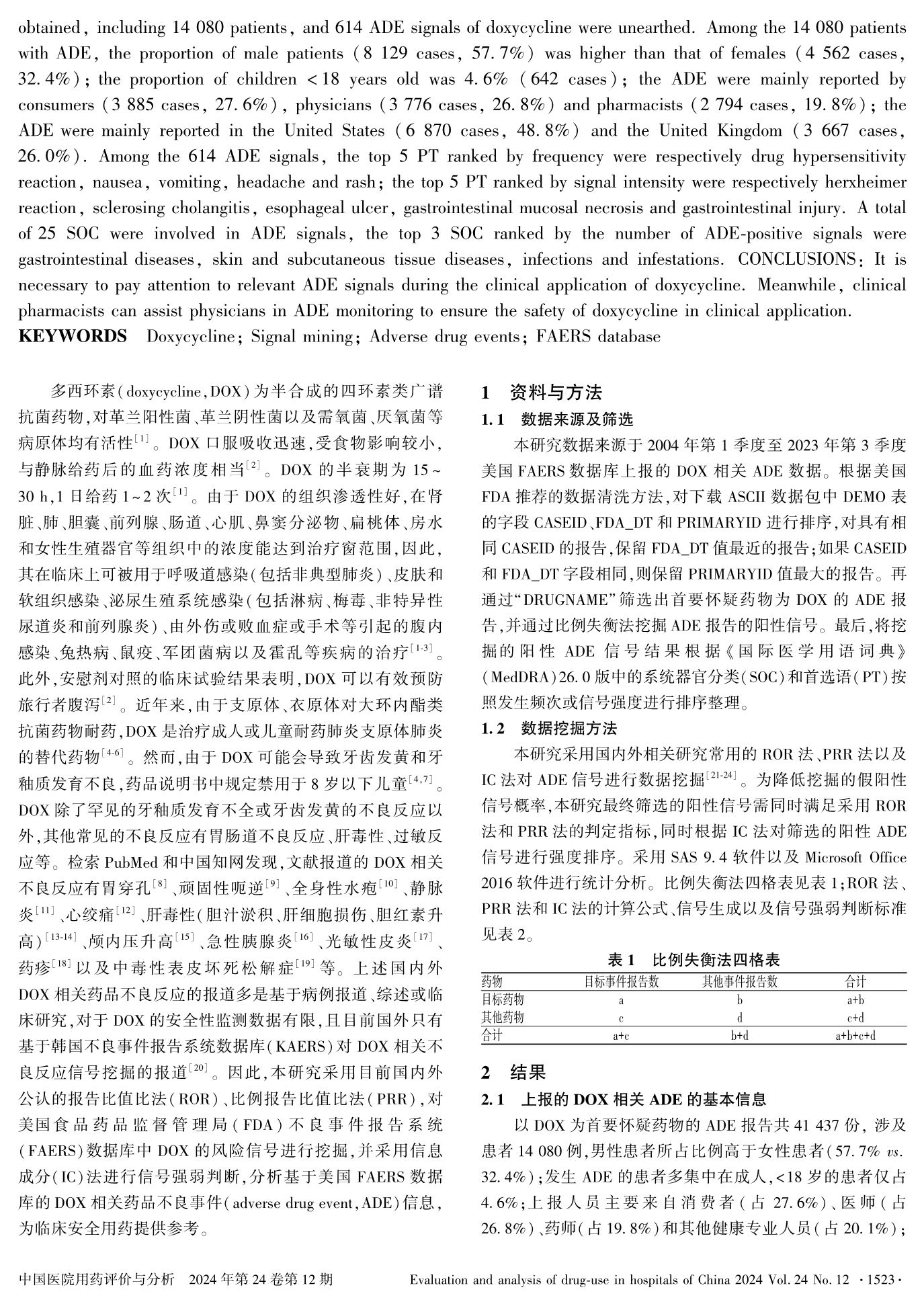 基于美國FAERS數(shù)據(jù)庫的多西環(huán)素相關(guān)藥品不良事件信號挖掘與分析