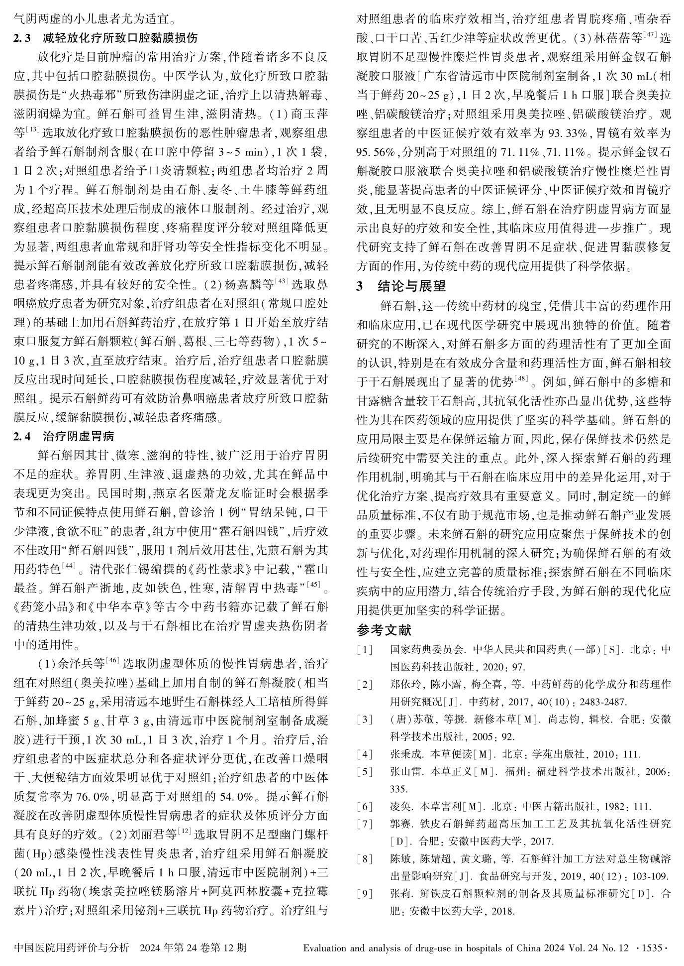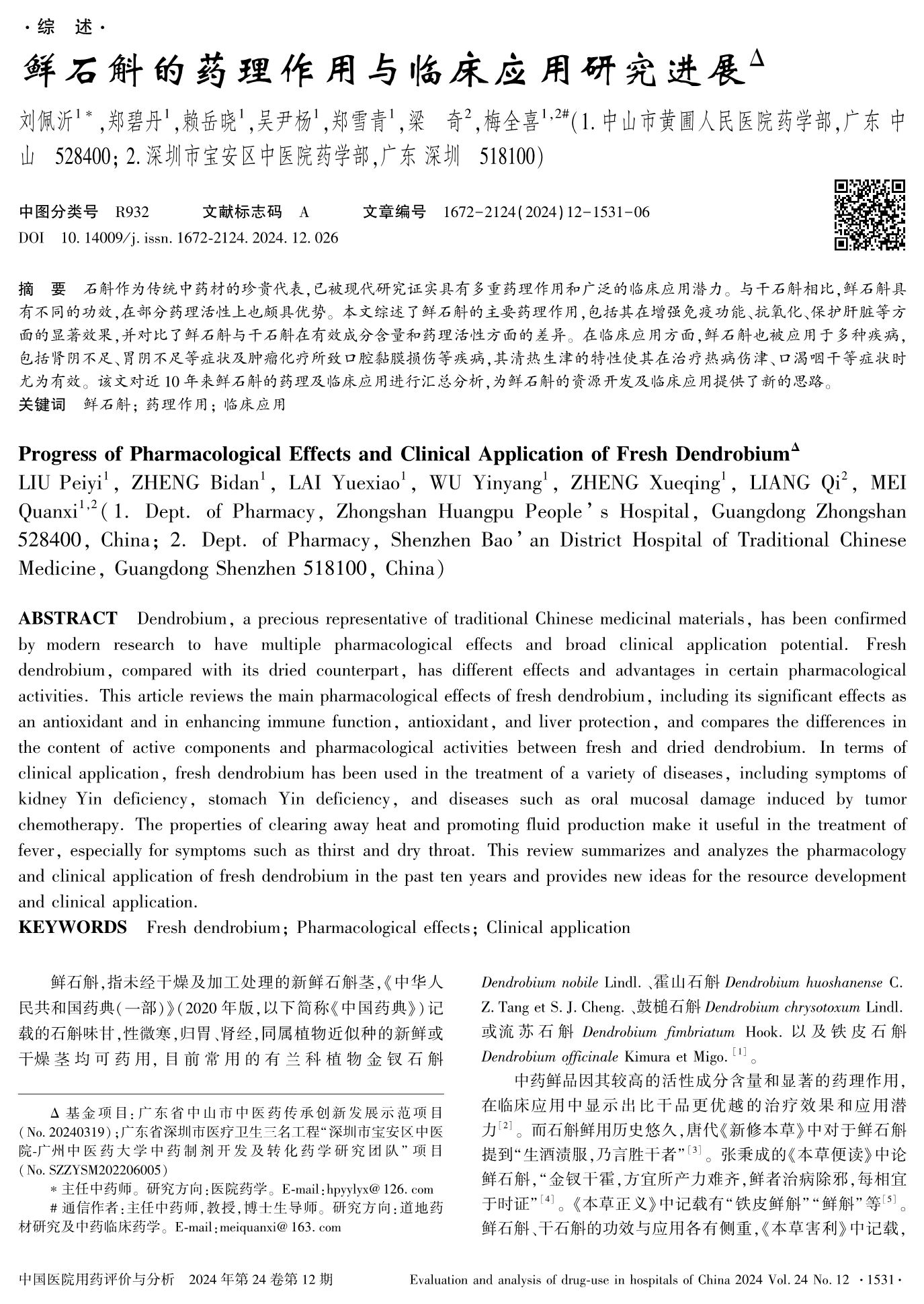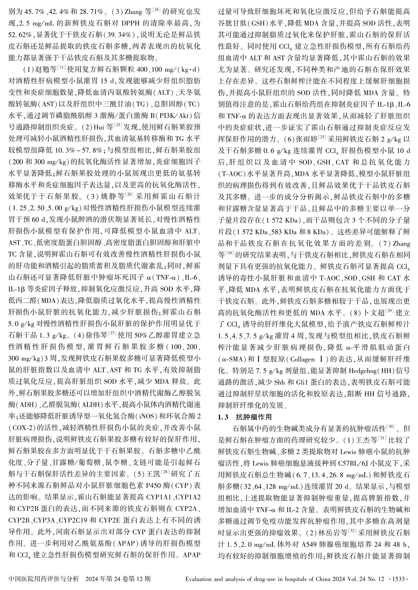 鮮石斛的藥理作用與臨床應(yīng)用研究進(jìn)展